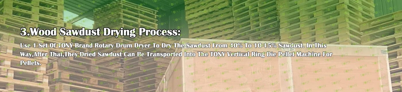 1.To Dry The 40% Sawdust Into 10-15% Sawdust. |