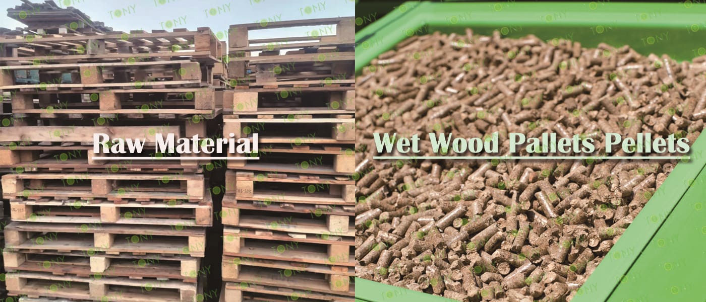 TONY Brand 5-6 Ton/Hour Wet Wood Pallets Pellet Manufacturing Plant can take wet wood pallets, various types of wood - related biomass materials, such as branches, small - diameter logs, and wood shavings, with wet wood as the main raw material. After pretreatment and processing, it is solidified into high - density wood pellet fuel. This fuel is an ideal substitute for coal and oil and plays a role in energy conservation and emission reduction. At present, it has been widely used in regions rich in wood resources.