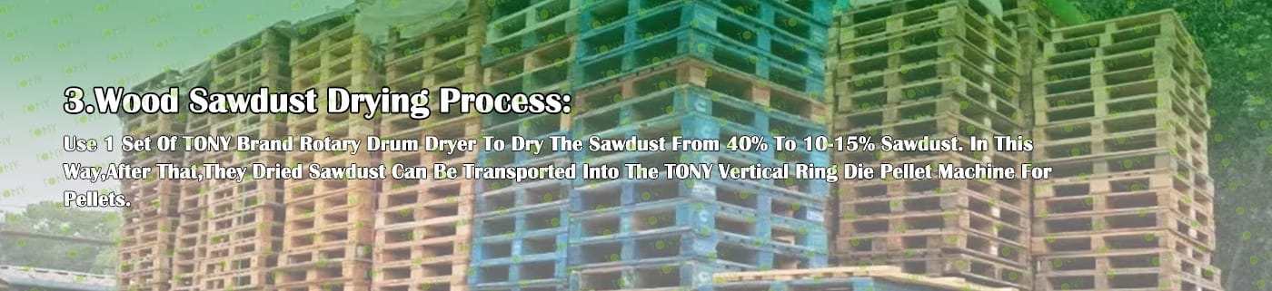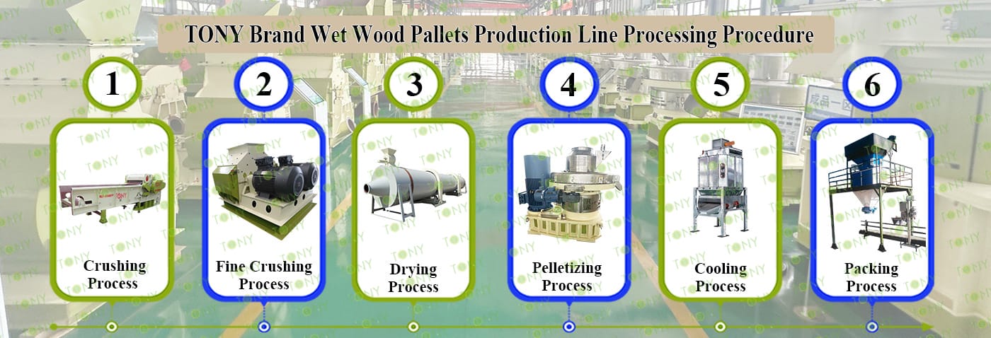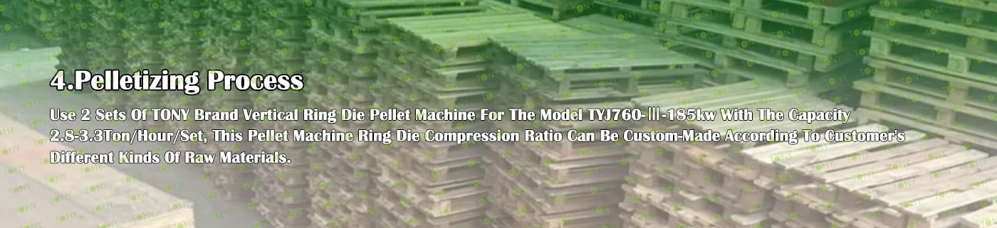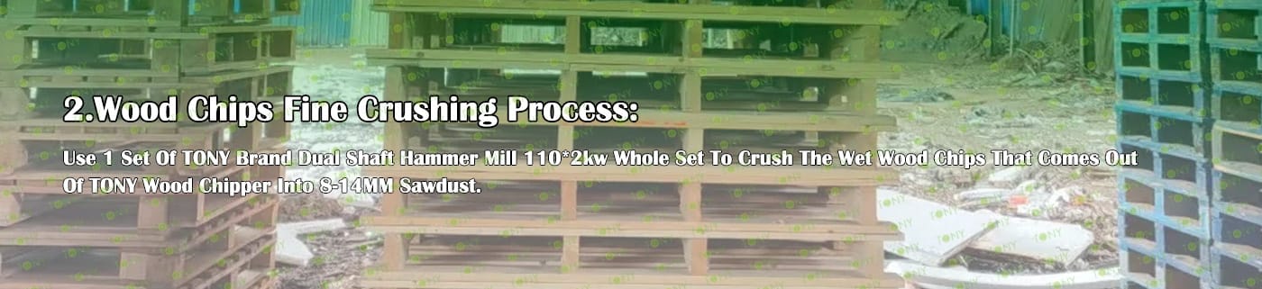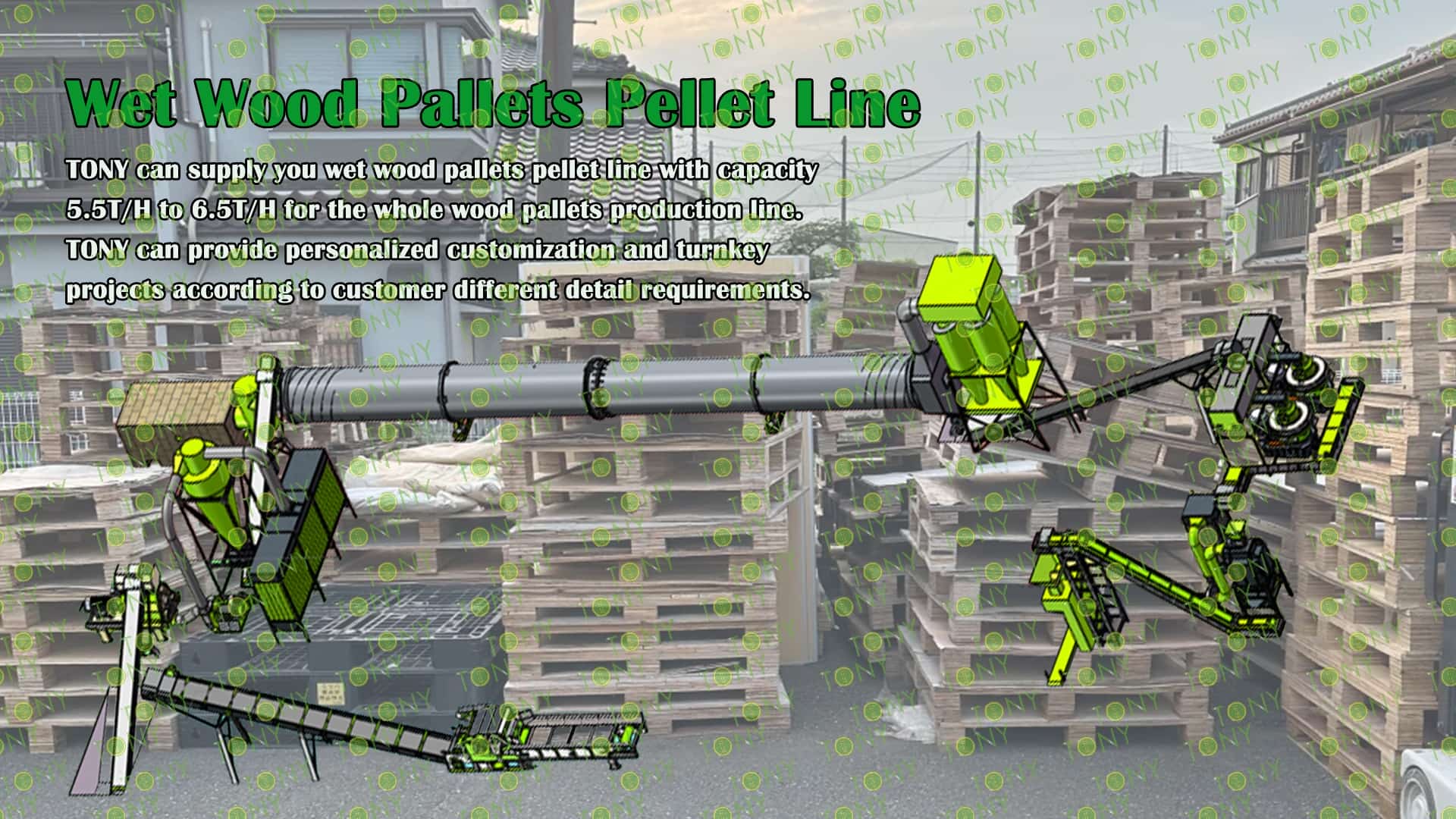 3.TONY Brand 5.5-6.5Ton /Hour Wet Wood Pallets Pellet Line Project Process