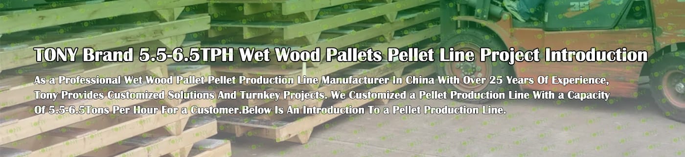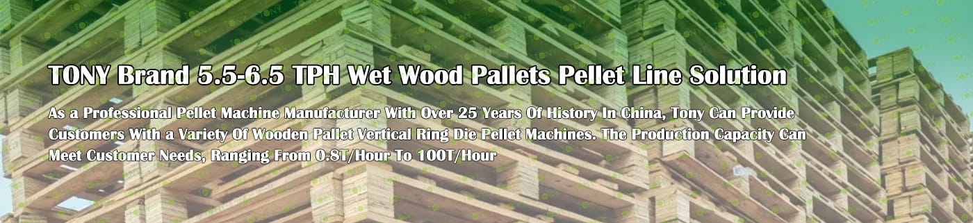 TONY Brand 5.5-6.5 Ton/Hour Wet Wood Pallets Pellet Manufacturing Plant can take wet wood pallets, various types of wood - related biomass materials, such as branches, small - diameter logs, and wood shavings, with wet wood as the main raw material. After pretreatment and processing, it is solidified into high - density wood pellet fuel. This fuel is an ideal substitute for coal and oil and plays a role in energy conservation and emission reduction. At present, it has been widely used in regions rich in wood resources.