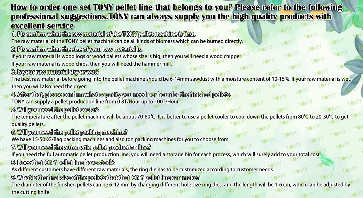 | Next, TONY Will Introduce To You All The Necessary Machinery That Will Be Used For The Whole Pellet Production Line. Some Machines Can Be Custom - Made By Customers According To Different Customers' Detailed Demands. Contact TONY For More Details, Including Quotation And Layout. | |||