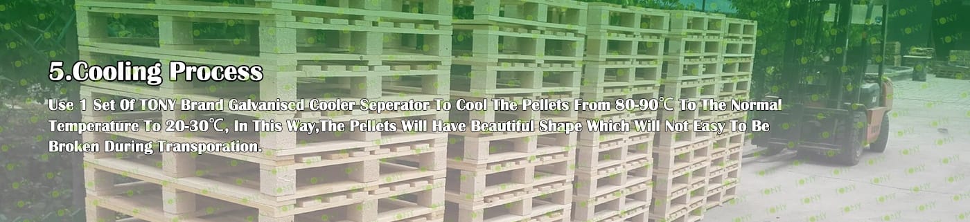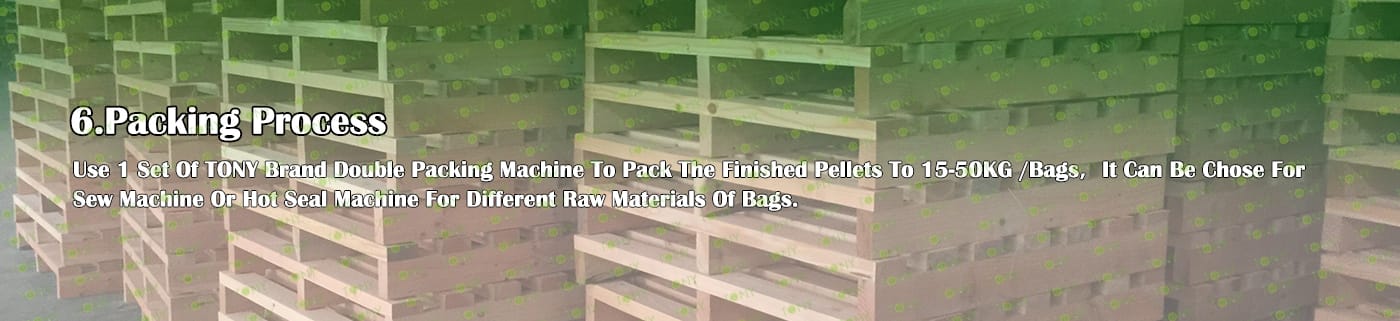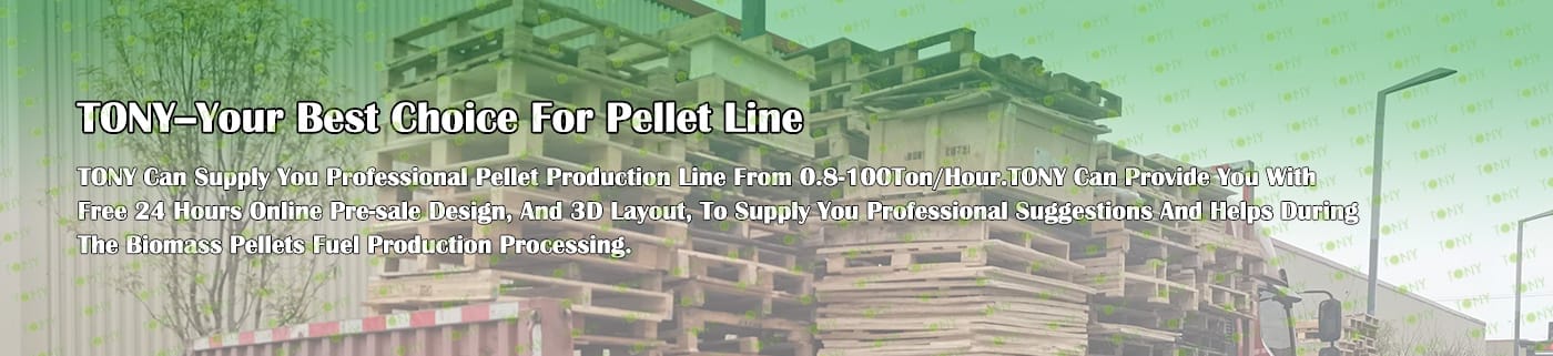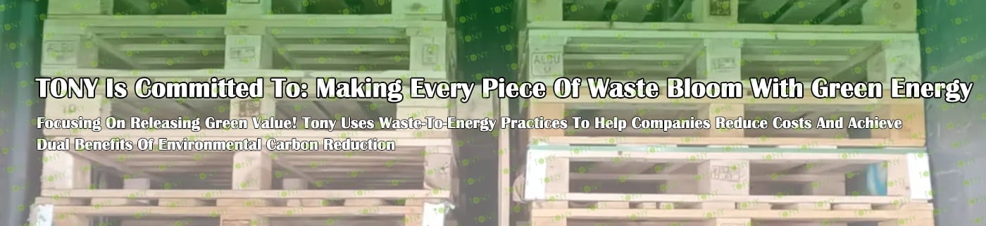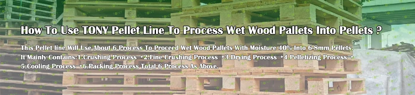 How to use the TONY pellet production line to make pellets from wet wood pallets? The process mainly includes the following steps and equipment: 1. Use TONY comprehensive chipper to grind wet wood pallets with width 1m into wood chips 25 - 55 mm in length. 2. Use TONY effective hammer mill to crush the 25-55 mm wood chips into 8-14 mm sawdust. 3. Use TONY rotary drum dryer to dry the sawdust with a 40% moisture content down to a moisture content of 10%-15%. 4. Use TONY vertical ring die pellet machine to produce pellets with a diameter of 6-8 mm. 5. Use TONY galvanized cooler to cool the pellets from 80-90°C to 20-30°C. 6. Use TONY double packing machine to pack the pellets into bags, each weighing 15-50 kg. For more detailed information and quotations, you can contact TONY. TONY can provide all the above - mentioned products at highly competitive prices and with excellent quality |