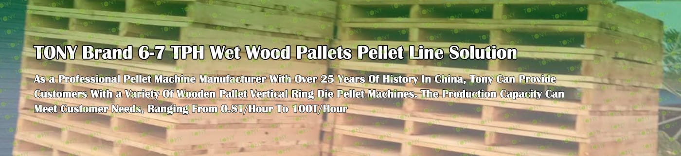TONY Brand 6-7 Ton/Hour Wet Wood Pallets Pellet Manufacturing Plant can take wet wood pallets, various types of wood - related biomass materials, such as branches, small - diameter logs, and wood shavings, with wet wood as the main raw material. After pretreatment and processing, it is solidified into high - density wood pellet fuel. This fuel is an ideal substitute for coal and oil and plays a role in energy conservation and emission reduction. At present, it has been widely used in regions rich in wood resources.