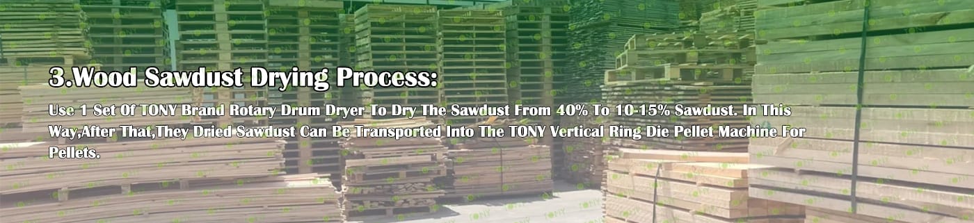 1.To Dry The 40% Sawdust Into 10-15% Sawdust. |