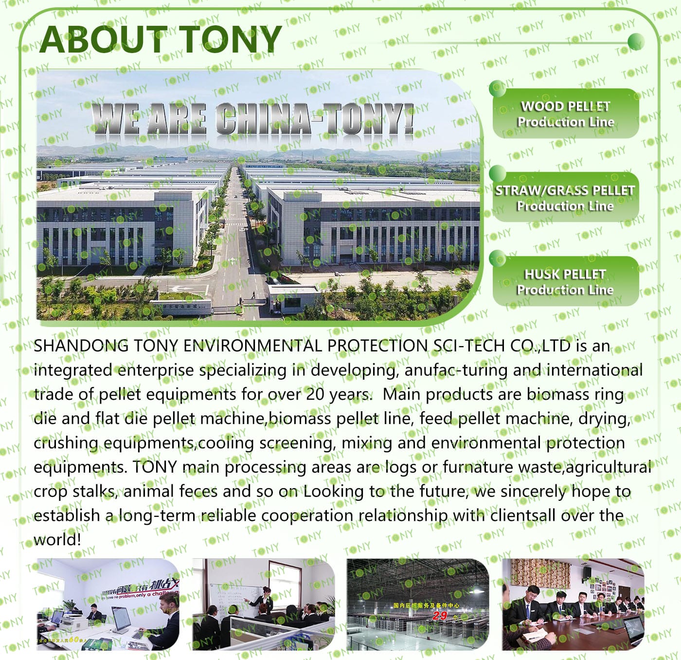 4.Main Machine: Comprehensive Chipper,Hammer Mill, Rotary Drum Dryer,TONY Pellet Machine TYJ860-Ⅲ-220KW,Pellets Cooler,Packing Machine And Belt Conveyors