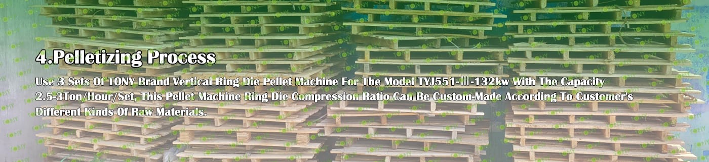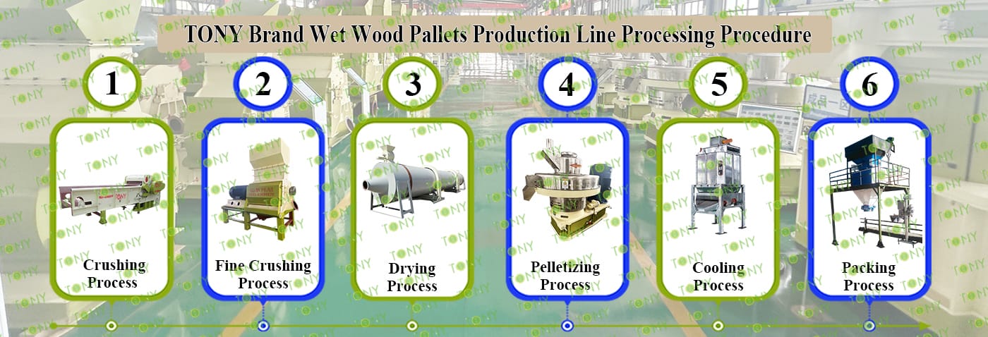 3.TONY Brand 6-7 Ton /Hour Wet Wood Pallets Pellet Line Project Process