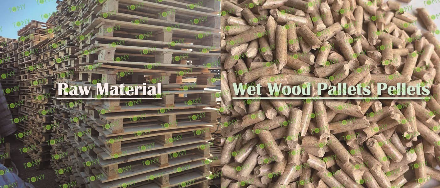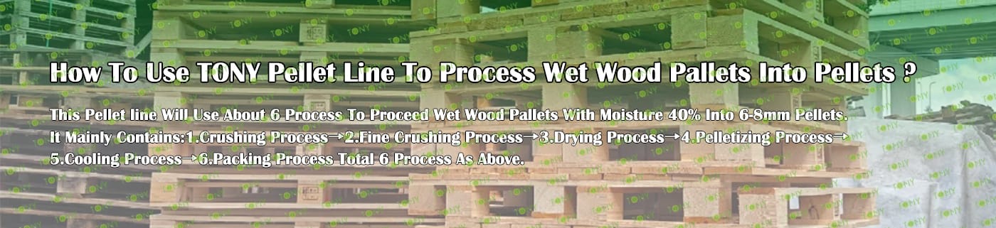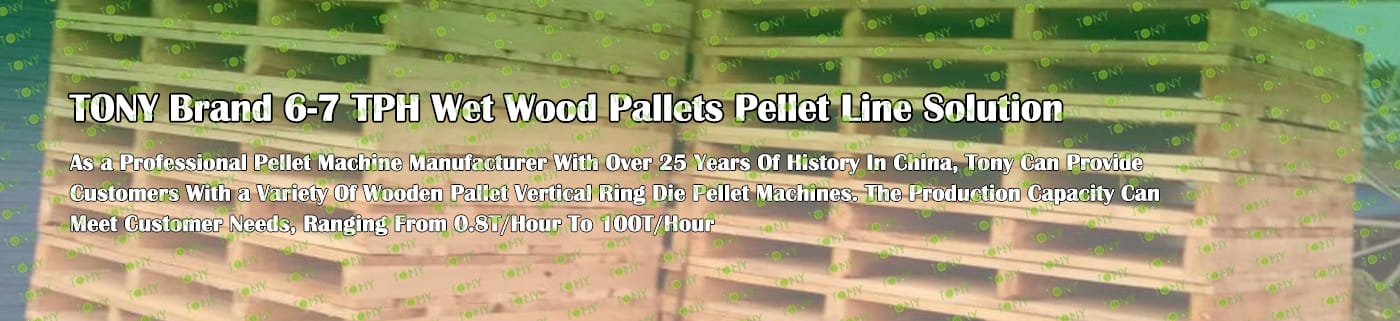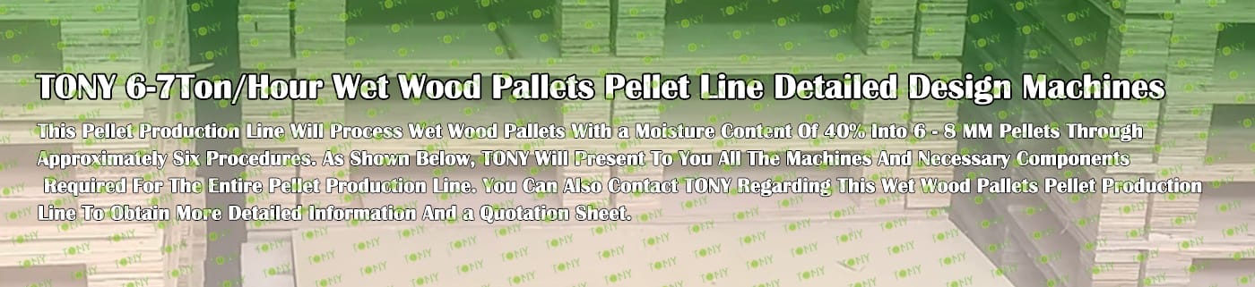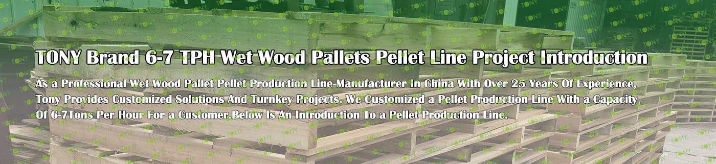 TONY Brand 6-7 Ton/Hour Wet Wood Pallets Pellet Manufacturing Plant can take wet wood pallets, various types of wood - related biomass materials, such as branches, small - diameter logs, and wood shavings, with wet wood as the main raw material. After pretreatment and processing, it is solidified into high - density wood pellet fuel. This fuel is an ideal substitute for coal and oil and plays a role in energy conservation and emission reduction. At present, it has been widely used in regions rich in wood resources.