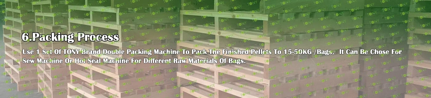 How to use the TONY pellet production line to make pellets from wet wood pallets? The process mainly includes the following steps and equipment: 1. Use TONY comprehensive chipper to grind wet wood pallets with width 1m into wood chips 25 - 55 mm in length. 2. Use TONY effective hammer mill to crush the 25-55 mm wood chips into 8-14 mm sawdust. 3. Use TONY rotary drum dryer to dry the sawdust with a 40% moisture content down to a moisture content of 10%-15%. 4. Use TONY vertical ring die pellet machine to produce pellets with a diameter of 6-8 mm. 5. Use TONY galvanized cooler to cool the pellets from 80-90°C to 20-30°C. 6. Use TONY double packing machine to pack the pellets into bags, each weighing 15-50 kg. For more detailed information and quotations, you can contact TONY. TONY can provide all the above - mentioned products at highly competitive prices and with excellent quality. |