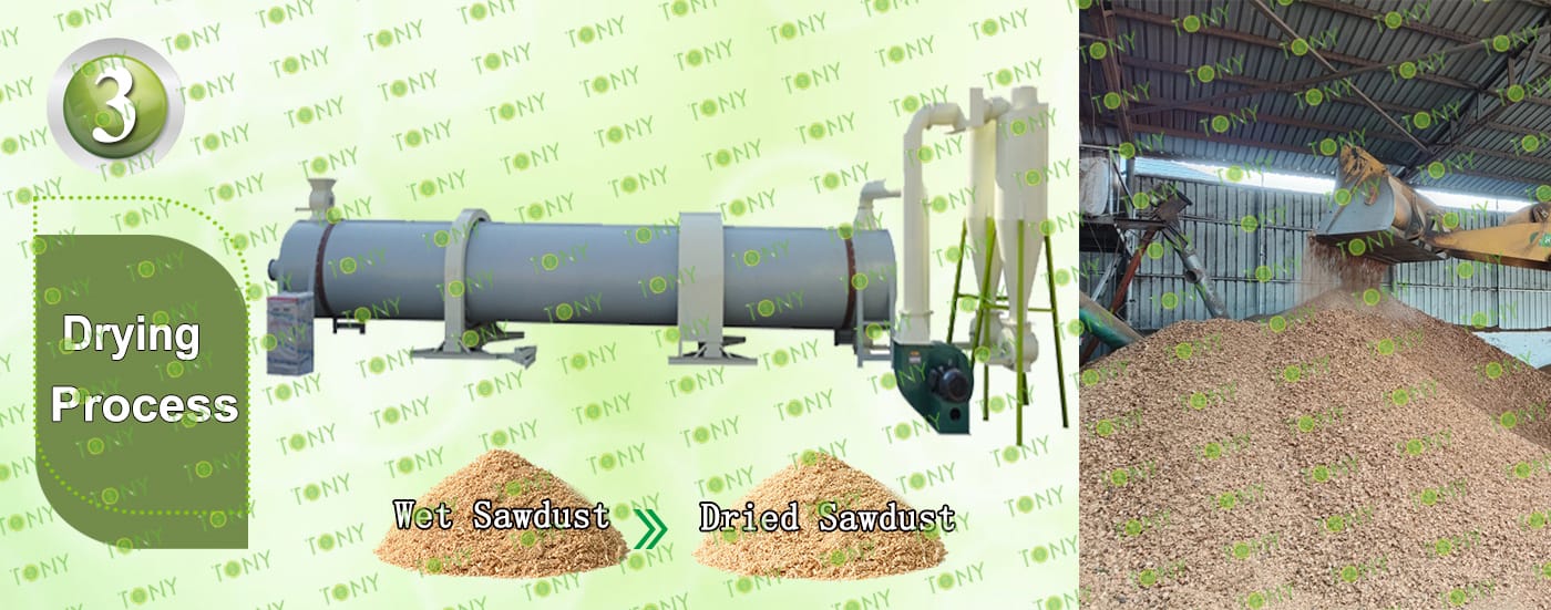 A.This process is mainly used to dry the sawdust from 40% to 10-15%.