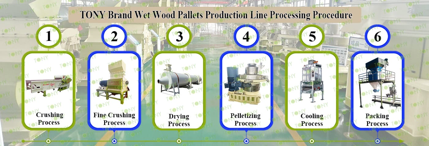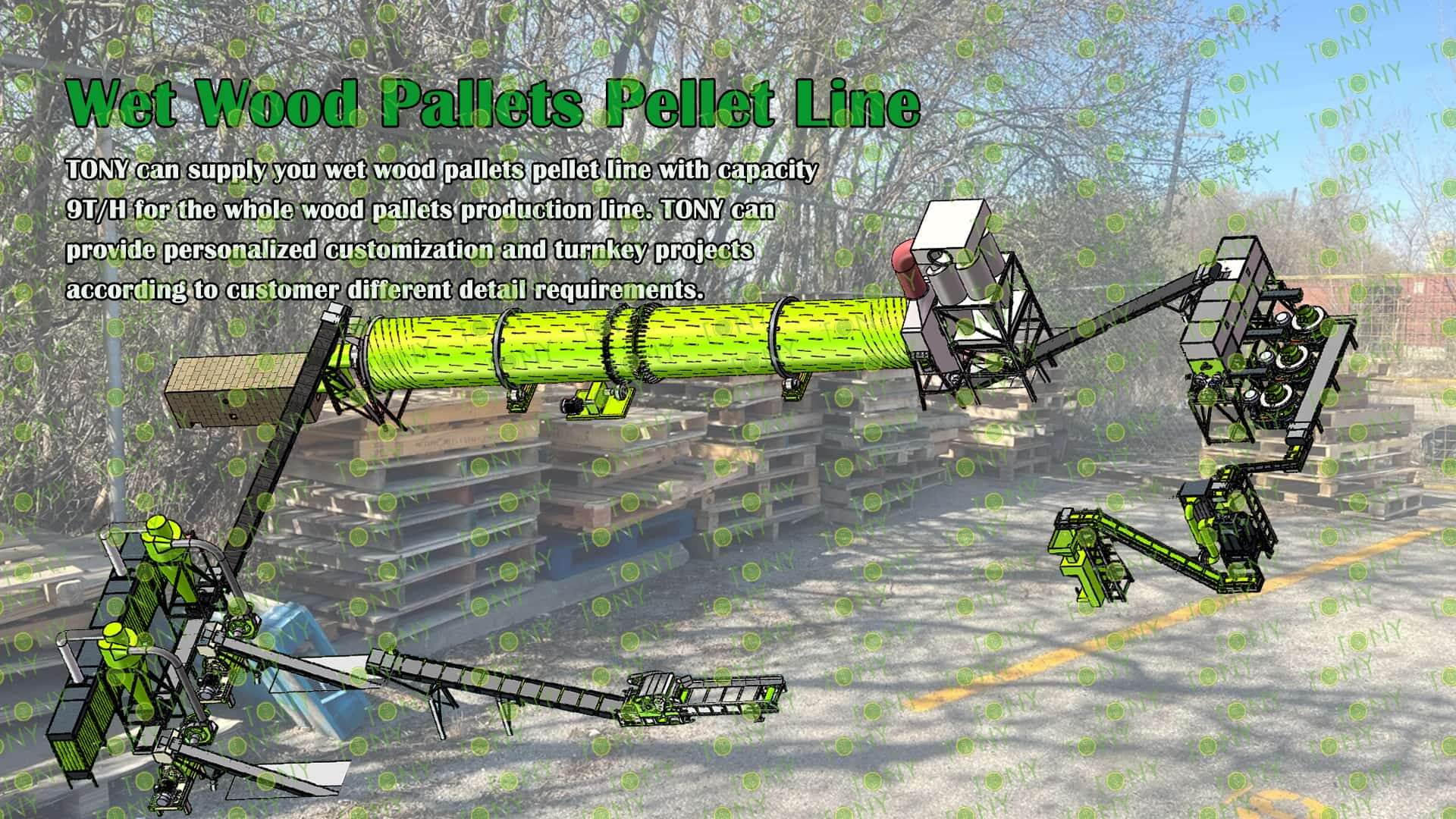 3.TONY Brand 9Ton /Hour Wet Wood Pallets Pellet Line Project Process