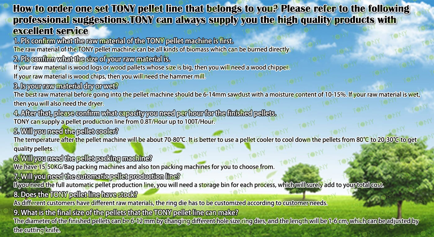 | Next, TONY Will Introduce To You All The Necessary Machinery That Will Be Used For The Whole Pellet Production Line. Some Machines Can Be Custom - Made By Customers According To Different Customers' Detailed Demands. Contact TONY For More Details, Including Quotation And Layout. | |||