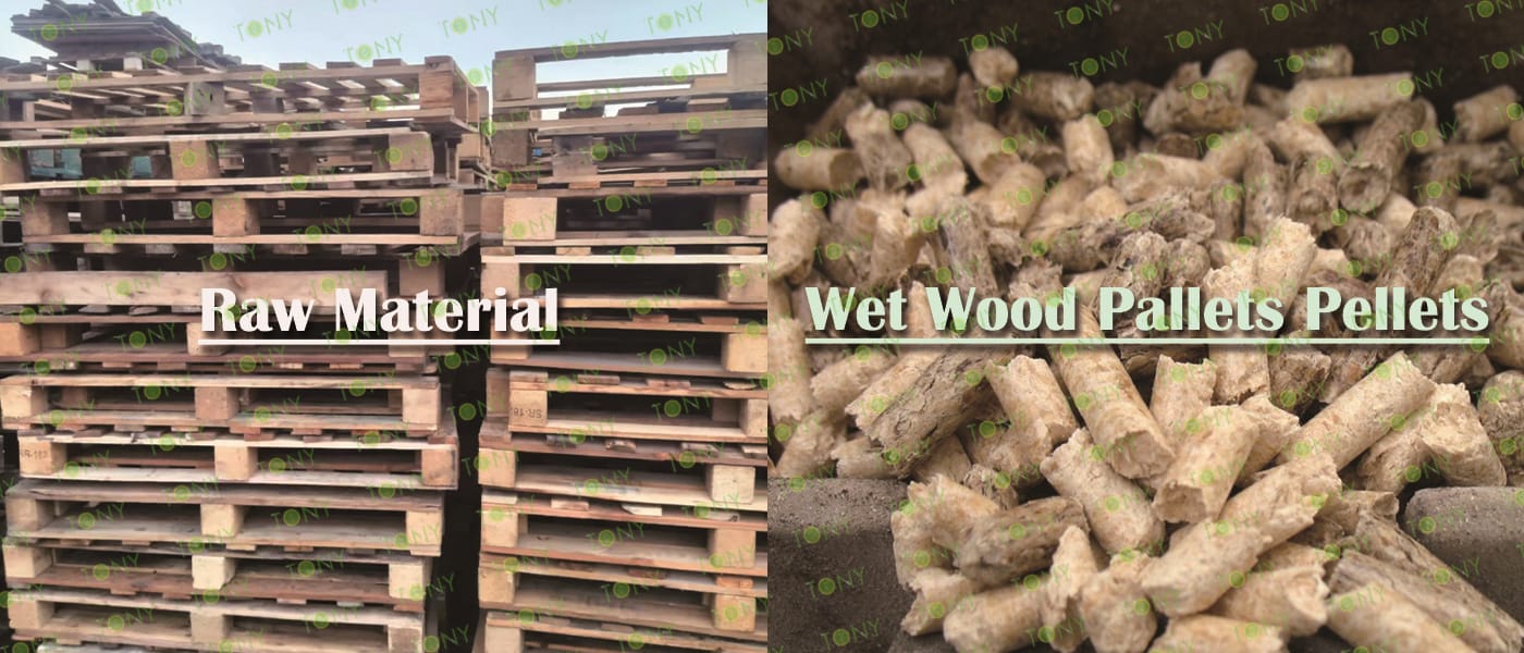 TONY Brand 9Ton/Hour Wet Wood Pallets Pellet Manufacturing Plant can take wet wood pallets, various types of wood - related biomass materials, such as branches, small - diameter logs, and wood shavings, with wet wood as the main raw material. After pretreatment and processing, it is solidified into high - density wood pellet fuel. This fuel is an ideal substitute for coal and oil and plays a role in energy conservation and emission reduction. At present, it has been widely used in regions rich in wood resources.