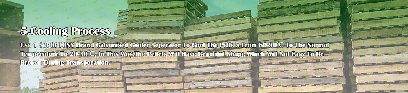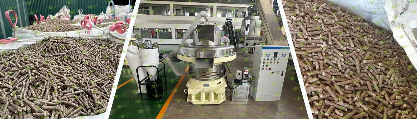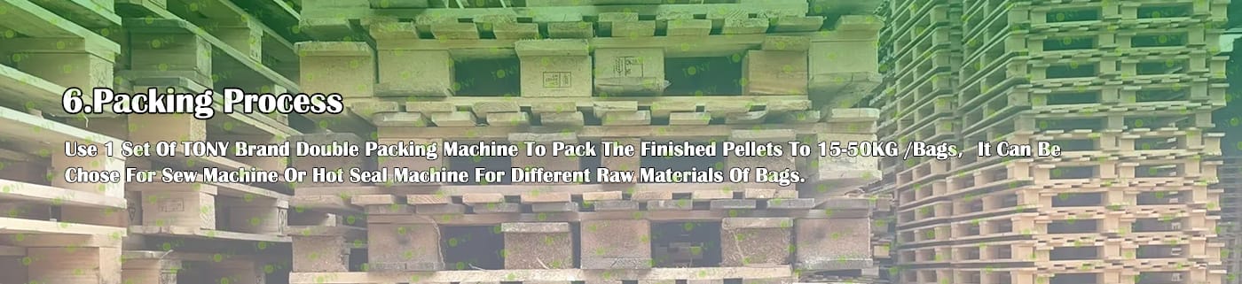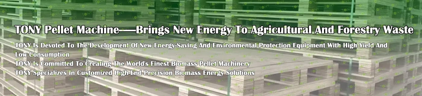How to use the TONY pellet production line to make pellets from wet wood pallets? The process mainly includes the following steps and equipment: 1. Use TONY comprehensive chipper to grind wet wood pallets with width 1.3m into wood chips 25 - 55 mm in length. 2. Use TONY effective hammer mill to crush the 25-55 mm wood chips into 8-14 mm sawdust. 3. Use TONY rotary drum dryer to dry the sawdust with a 40% moisture content down to a moisture content of 10%-15%. 4. Use TONY vertical ring die pellet machine to produce pellets with a diameter of 6-8 mm. 5. Use TONY galvanized cooler to cool the pellets from 80-90°C to 20-30°C. 6. Use TONY double packing machine to pack the pellets into bags, each weighing 15-50 kg. For more detailed information and quotations, you can contact TONY. TONY can provide all the above - mentioned products at highly competitive prices and with excellent quality. |