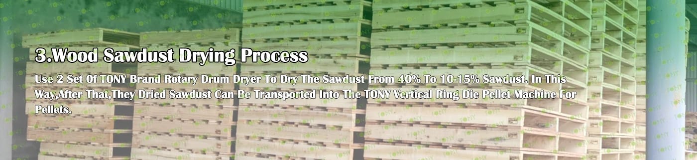 1.To Dry The 40% Sawdust Into 10-15% Sawdust. |