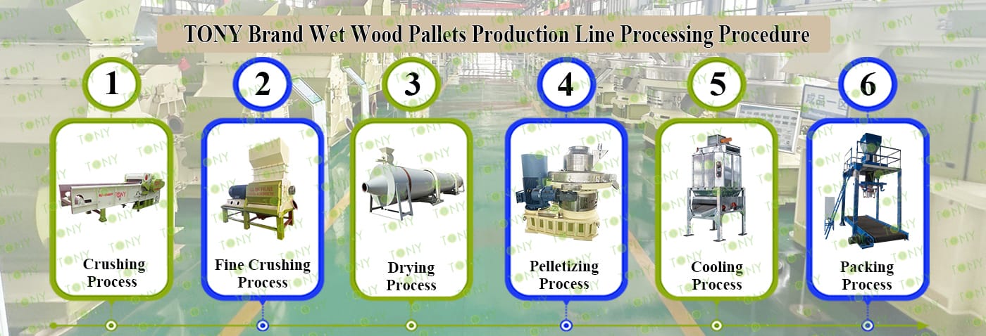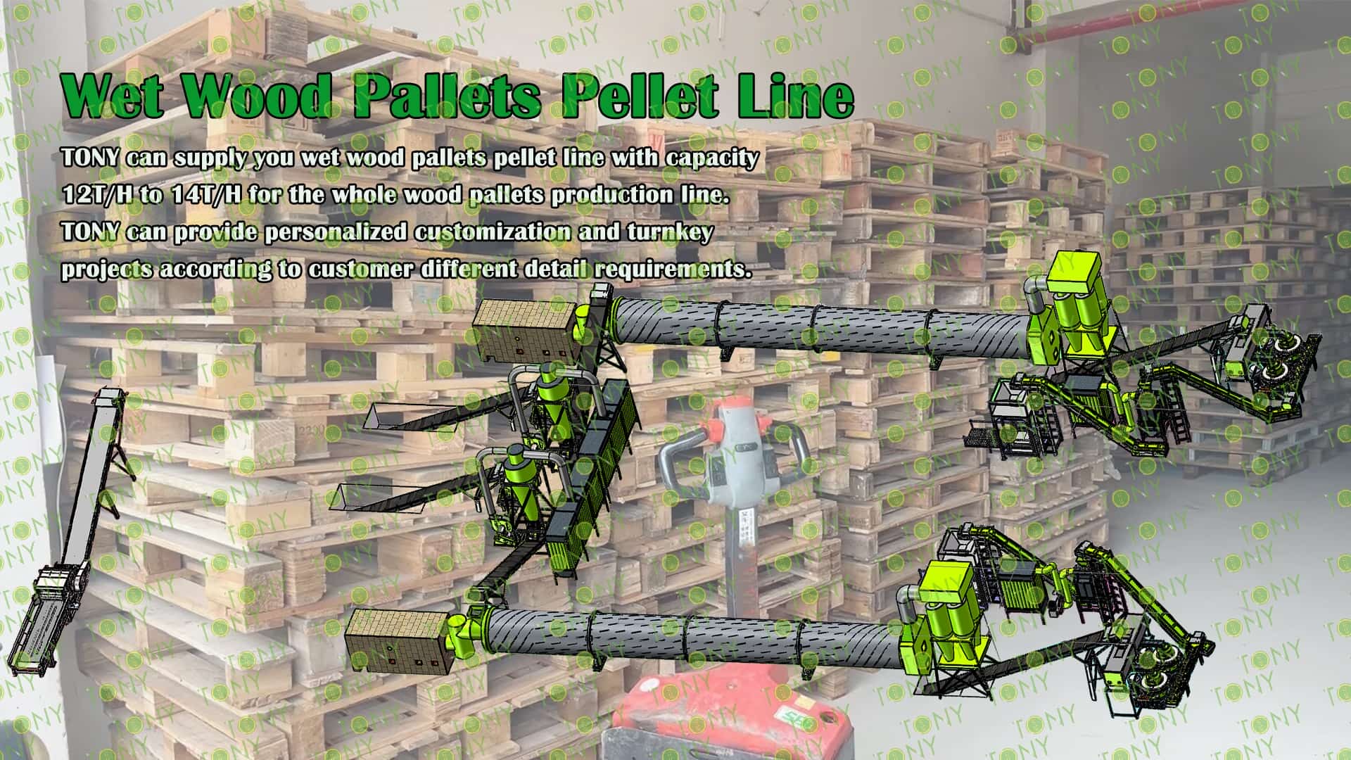 3.TONY Brand 12-14Ton /Hour Wet Wood Pallets Pellet Line Project Process