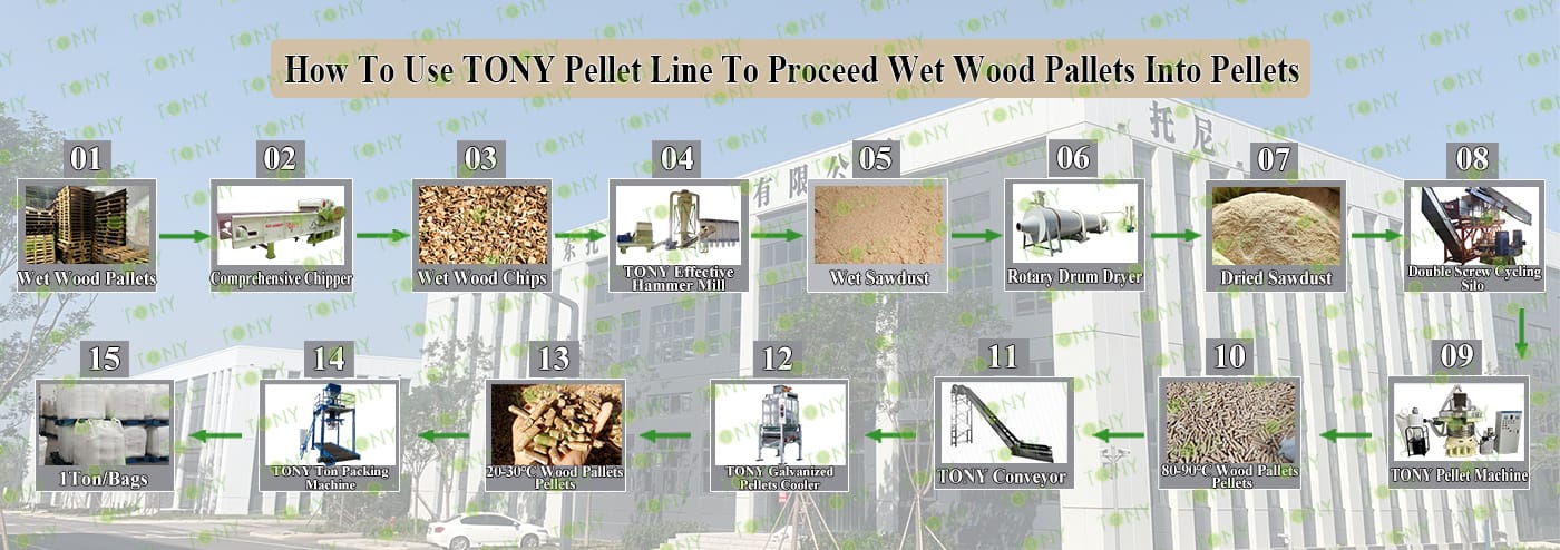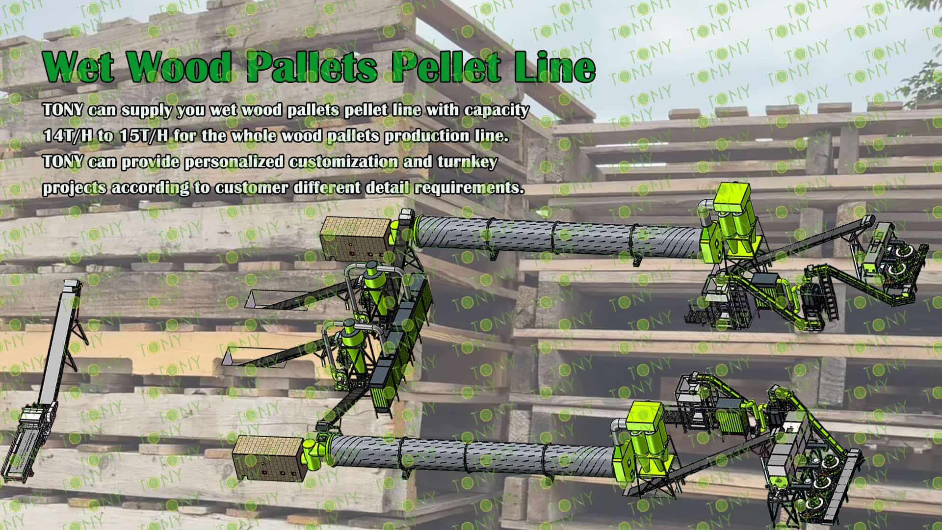 3.TONY Brand 14-15Ton /Hour Wet Wood Pallets Pellet Line Project Process