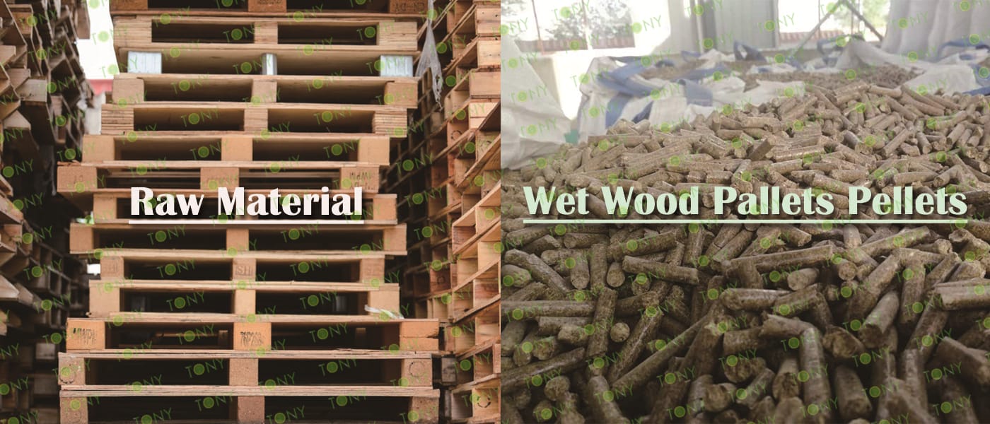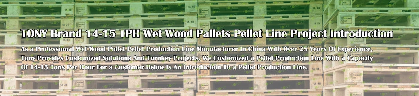 TONY Brand 14-15Ton/Hour Wet Wood Pallets Pellet Manufacturing Plant can take wet wood pallets, various types of wood - related biomass materials, such as branches, small - diameter logs, and wood shavings, with wet wood as the main raw material. After pretreatment and processing, it is solidified into high - density wood pellet fuel. This fuel is an ideal substitute for coal and oil and plays a role in energy conservation and emission reduction. At present, it has been widely used in regions rich in wood resources.