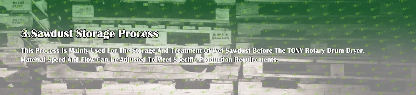 B. TONY brand sawdust storage to storage the sawdust that comes out of the hammer mill.This process can be optional by customer.If customer do not chose the storage bin,he can storage the sawdust on the ground directly which may need some labour.