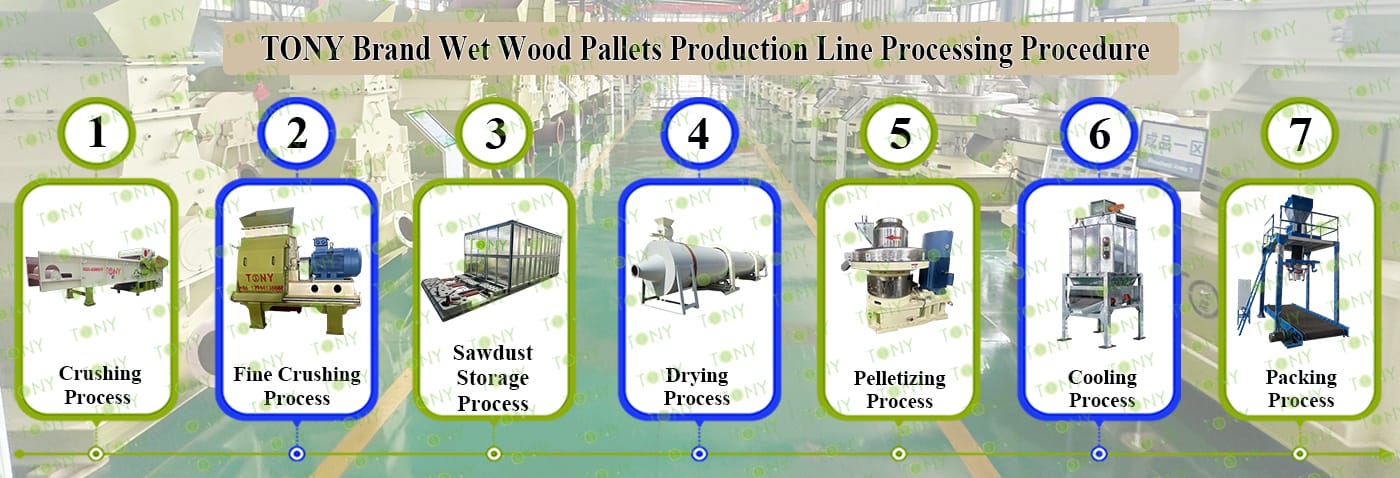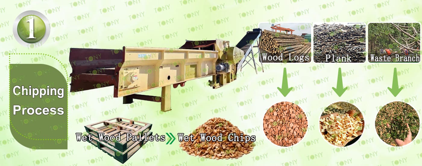3.TONY Brand 18Ton /Hour Wet Wood Pallets Pellet Line Project Process
