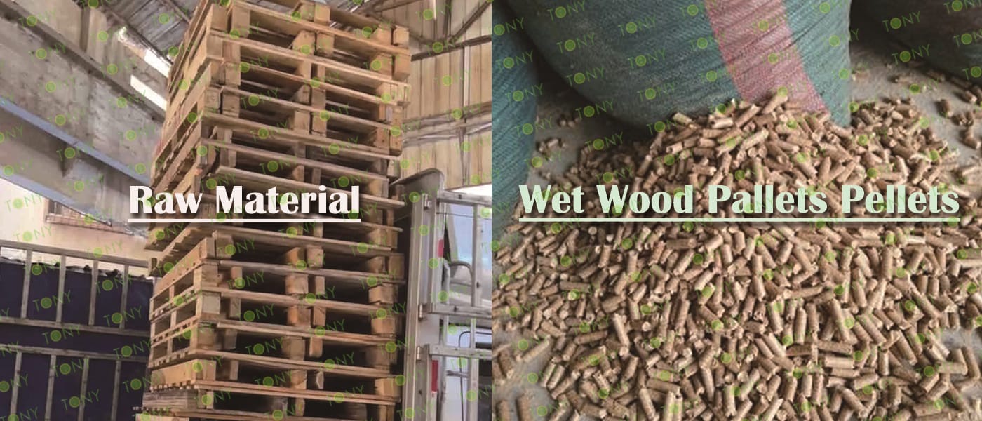 TONY Brand 18-20Ton/Hour Wet Wood Pallets Pellet Manufacturing Plant can take wet wood pallets, various types of wood - related biomass materials, such as branches, small - diameter logs, and wood shavings, with wet wood as the main raw material. After pretreatment and processing, it is solidified into high - density wood pellet fuel. This fuel is an ideal substitute for coal and oil and plays a role in energy conservation and emission reduction. At present, it has been widely used in regions rich in wood resources.