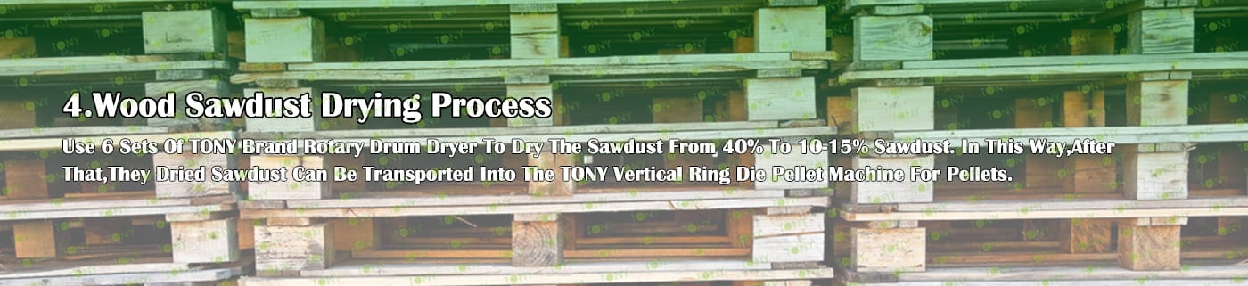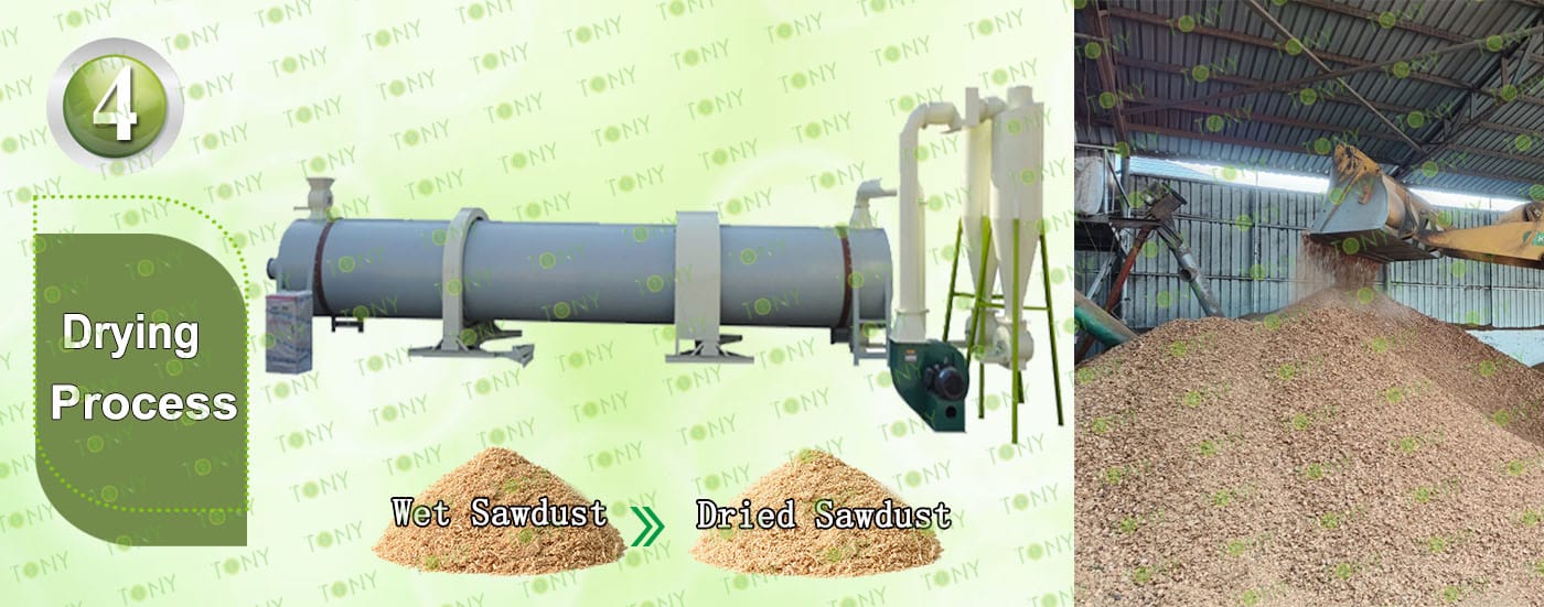 1.To Dry The 40% Sawdust Into 10-15% Sawdust. |