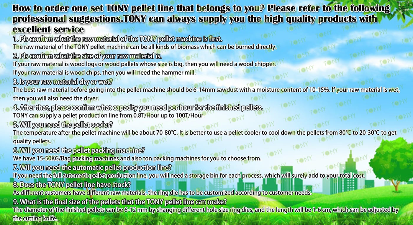 Next, TONY Will Introduce To You All The Necessary Machinery That Will Be Used For The Whole Pellet Production Line. Some Machines Can Be Custom - Made By Customers According To Different Customers' Detailed Demands. Contact TONY For More Details, Including Quotation And Layout. |