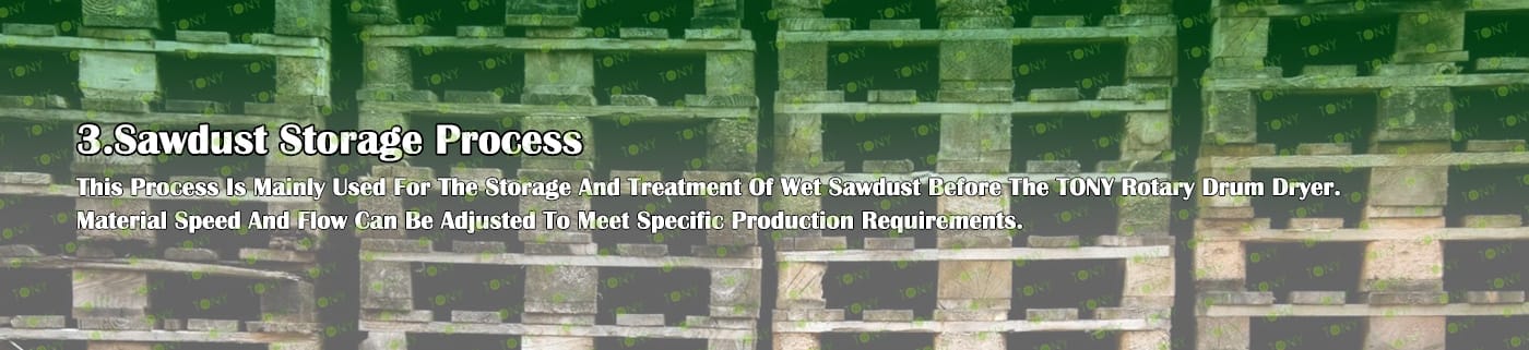B. TONY brand sawdust storage to storage the sawdust that comes out of the hammer mill.This process can be optional by customer.If customer do not chose the storage bin,he can storage the sawdust on the ground directly which may need some labour.
