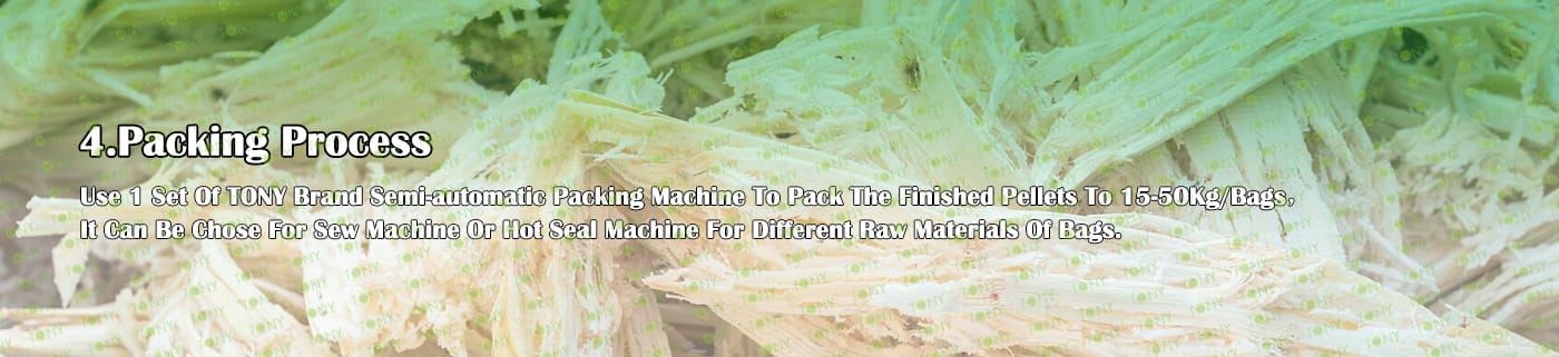 6. Основно оборудване: Ефективна чукова мелница-TFD65*55-45KW, машина за пелети TONY- TYJ551-Ⅲ-110KW, охладител за поцинковани пелети, полуавтоматична опаковъчна машина и лентови транспортьори