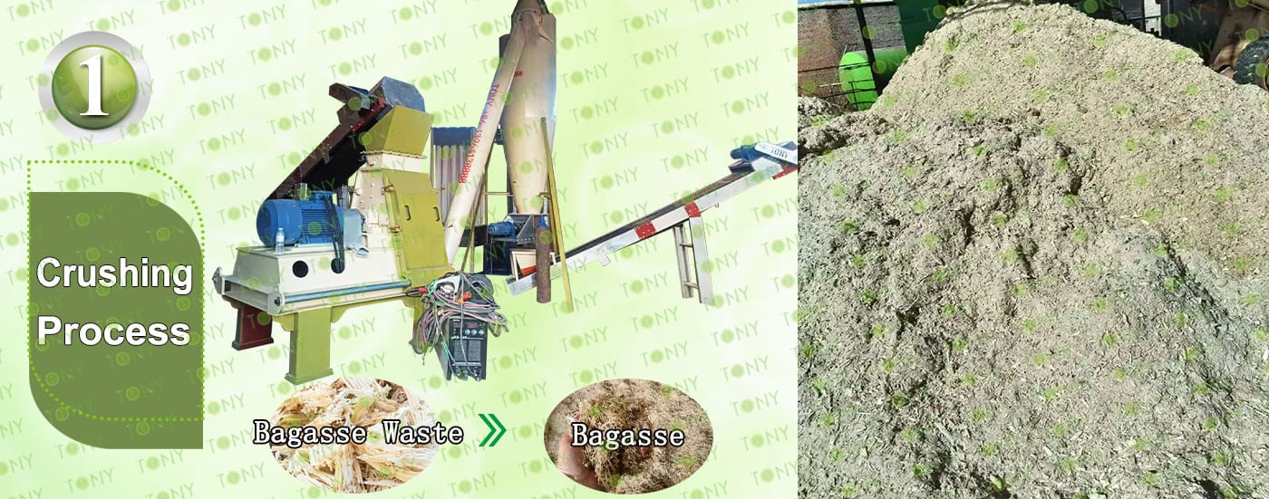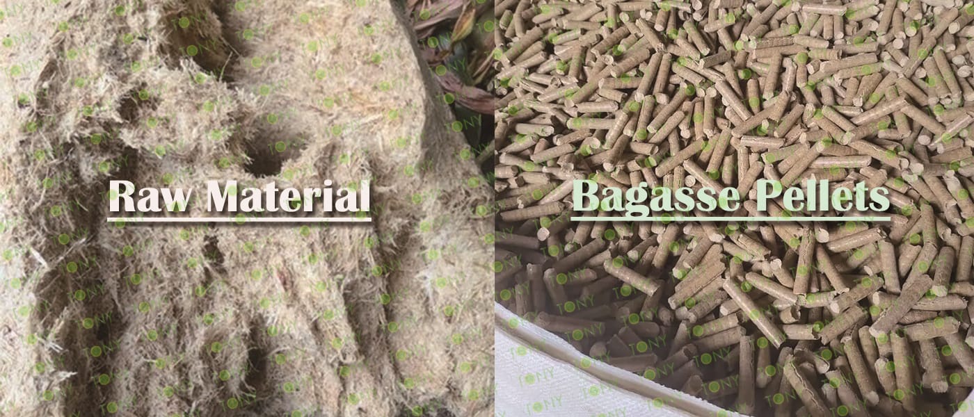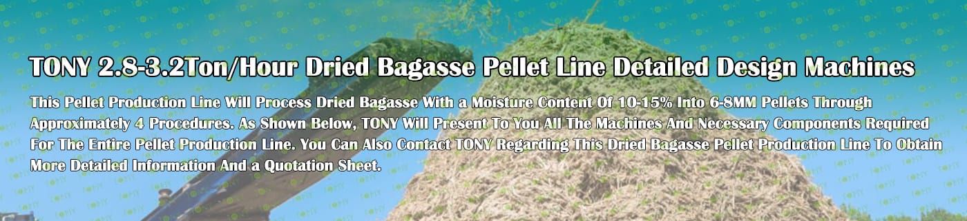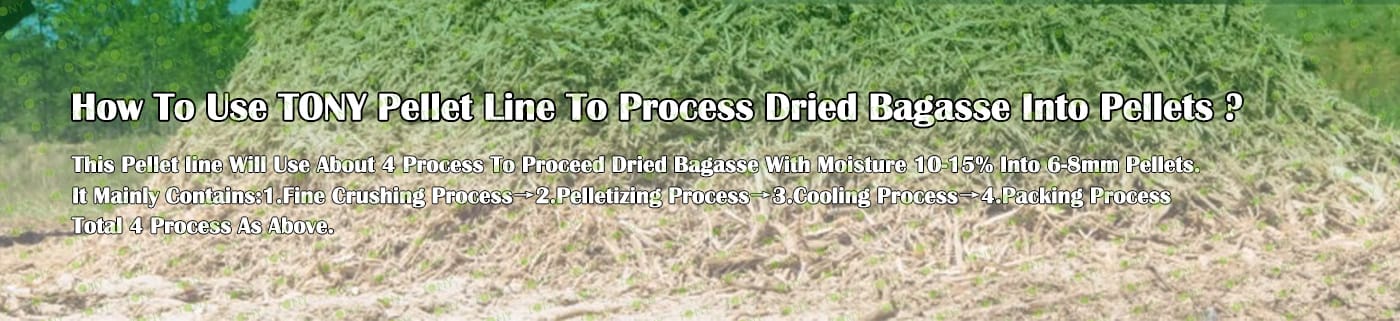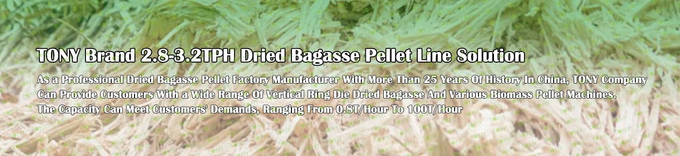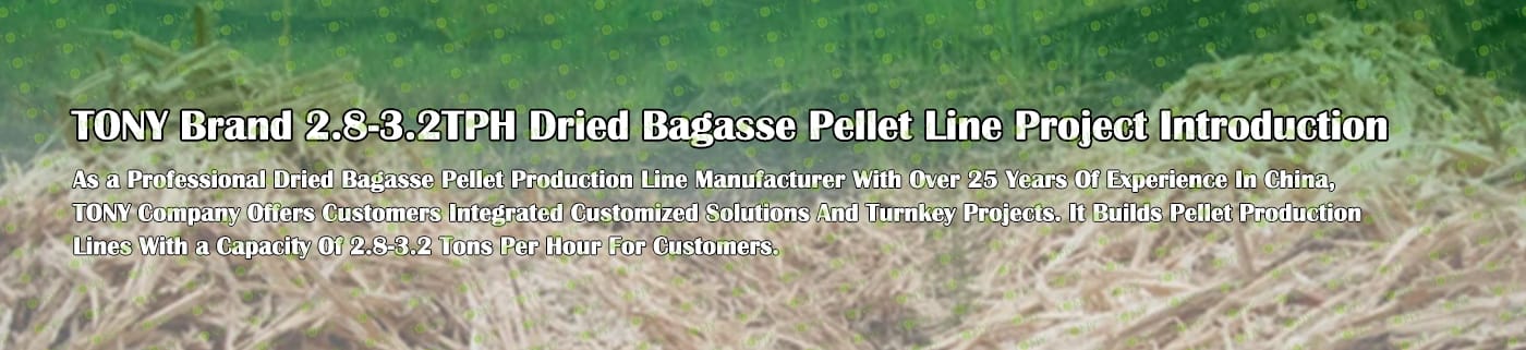Заводът за производство на пелети от сушена багаса с марка TONY 2,8-3,2 тона/час може да използва сушена багаса като основна суровина. След предварителна обработка и обработка, той се втвърдява в пелетно гориво Bagasse с висока плътност. Това гориво е идеален заместител на въглищата и петрола и играе роля в енергоспестяването и намаляването на емисиите. Понастоящем той се използва широко в региони, богати на ресурси от багаса.