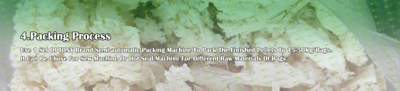 6. Основно оборудване: Ефективна чукова мелница-TFD75*100-90KW, машина за пелети TONY- TYJ760-Ⅲ-185KW, охладител за поцинковани пелети, полуавтоматична опаковъчна машина и лентови транспортьори
