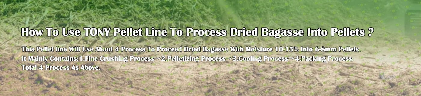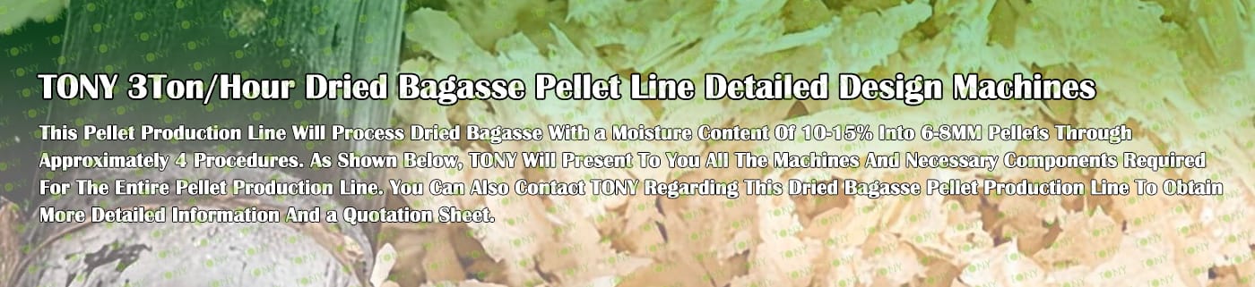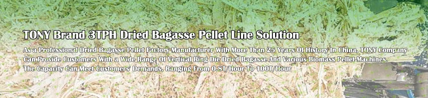 Заводът за производство на пелети от сушена багаса с марка TONY 3 тона/час може да използва сушена багаса като основна суровина. След предварителна обработка и обработка, той се втвърдява в пелетно гориво Bagasse с висока плътност. Това гориво е идеален заместител на въглищата и петрола и играе роля в енергоспестяването и намаляването на емисиите. Понастоящем той се използва широко в региони, богати на ресурси от багаса.