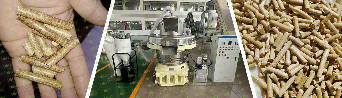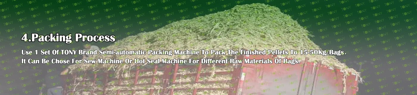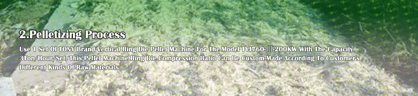 4. Основна машина: чукова мелница, машина за пелети TONY TYJ760-Ⅲ-200KW, охладител за пелети, опаковъчна машина и лентови транспортьори