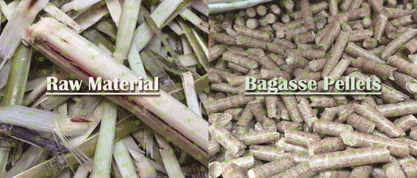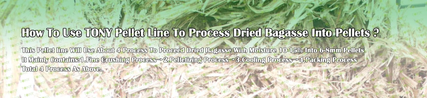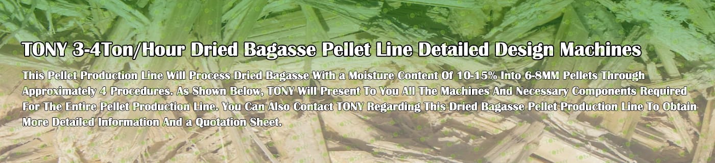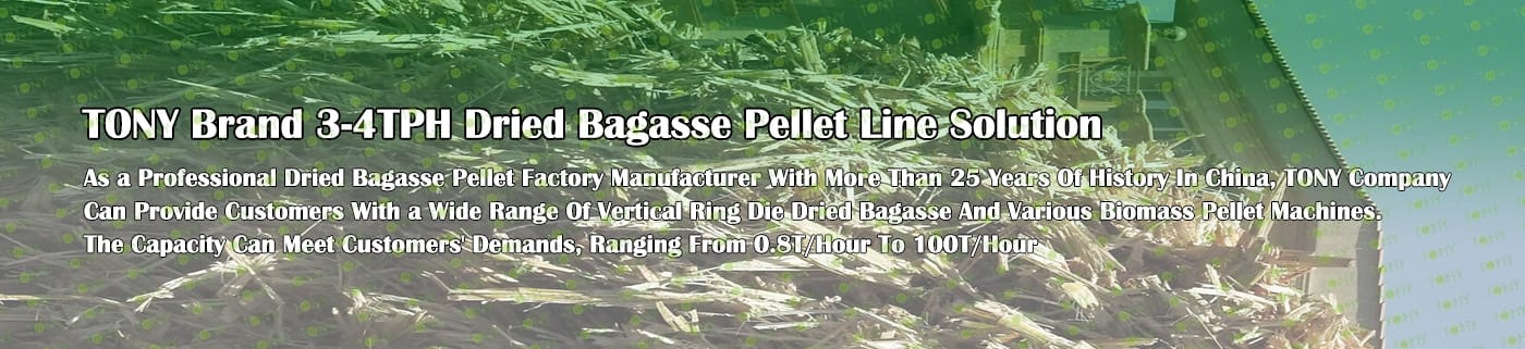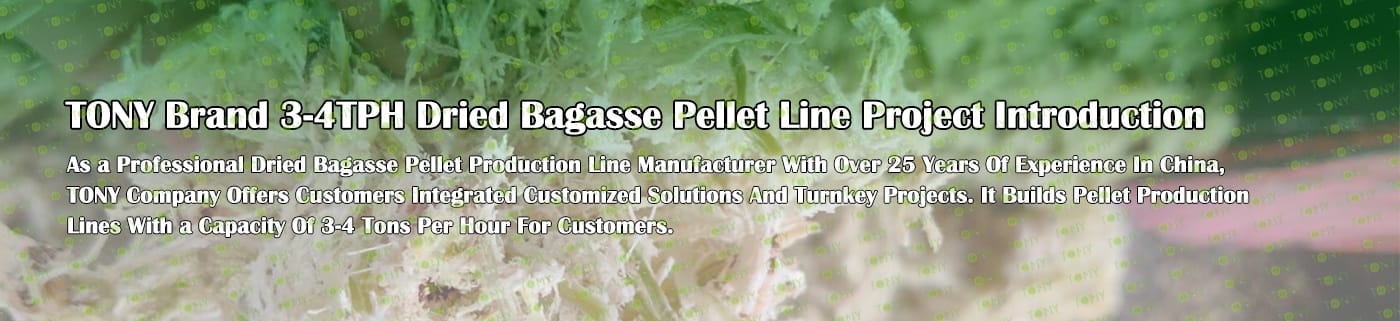 Заводът за производство на пелети от суха багаса с марка TONY 3-4 тона/час може да използва изсушена багаса като основна суровина. След предварителна обработка и обработка, той се втвърдява в пелетно гориво Bagasse с висока плътност. Това гориво е идеален заместител на въглищата и петрола и играе роля в енергоспестяването и намаляването на емисиите. Понастоящем той се използва широко в региони, богати на ресурси от багаса.