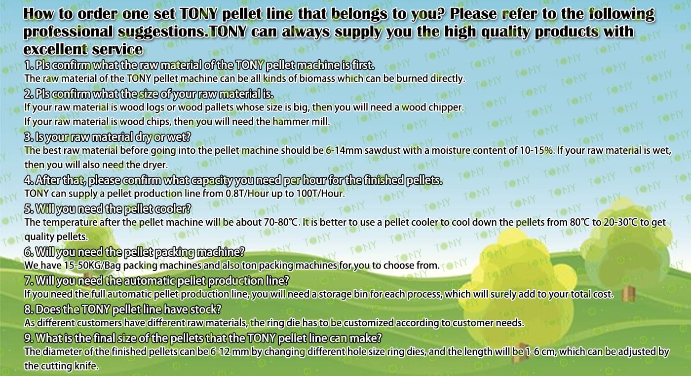 | На следващо място, Тони ще ви представи всички необходими машини, които ще бъдат използвани за цялата линия за производство на пелети. Някои машини могат да бъдат по поръчка - направени от клиентите според подробните изисквания на различни клиенти. Свържете се с Тони за повече подробности, включително оферта и оформление. | ||