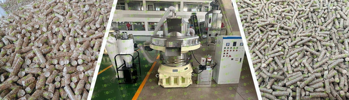 4. Основна машина: чукова мелница, машина за пелети TONY TYJ860-Ⅲ-220KW, охладител за пелети, опаковъчна машина и лентови транспортьори