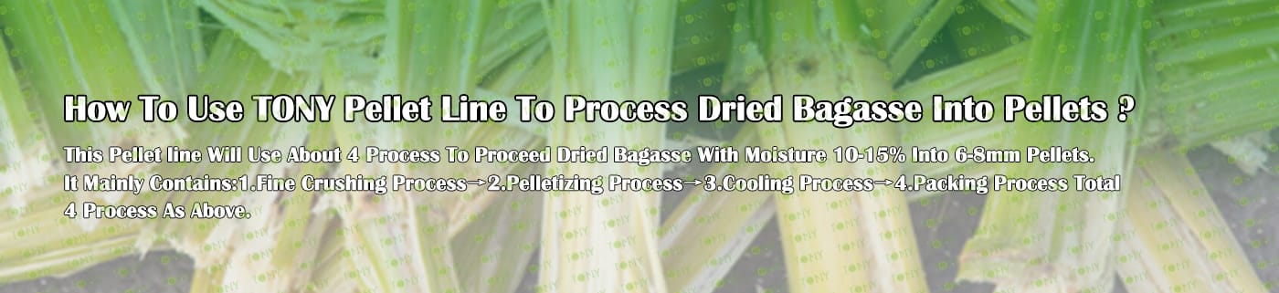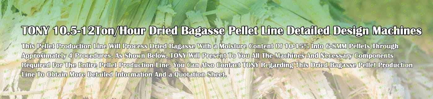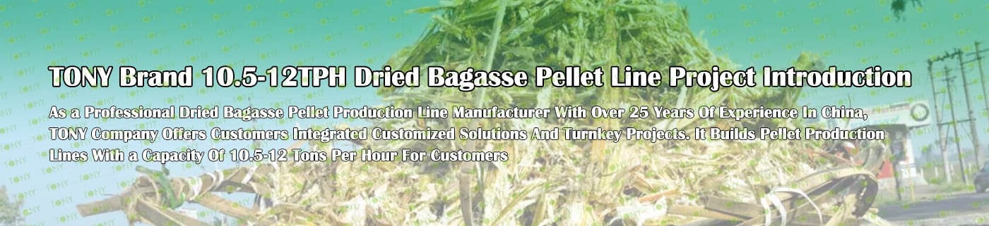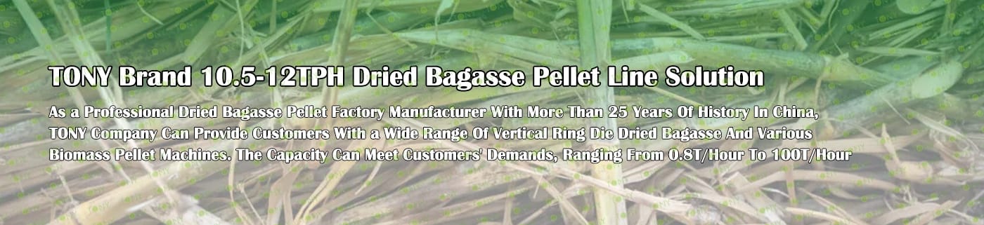 Заводът за производство на пелети от суха багаса с марка TONY 10,5-12 тона/час може да използва изсушена багаса като основна суровина. След предварителна обработка и обработка, той се втвърдява в пелетно гориво Bagasse с висока плътност. Това гориво е идеален заместител на въглищата и петрола и играе роля в енергоспестяването и намаляването на емисиите. Понастоящем той се използва широко в региони, богати на ресурси от багаса.