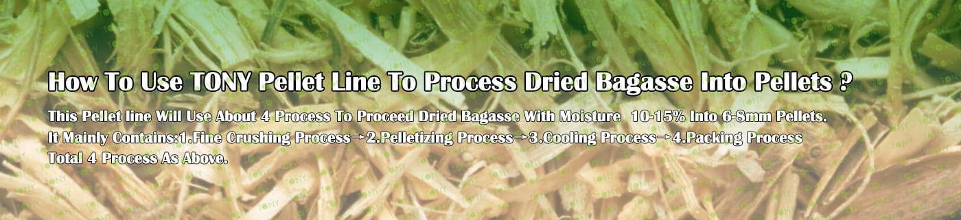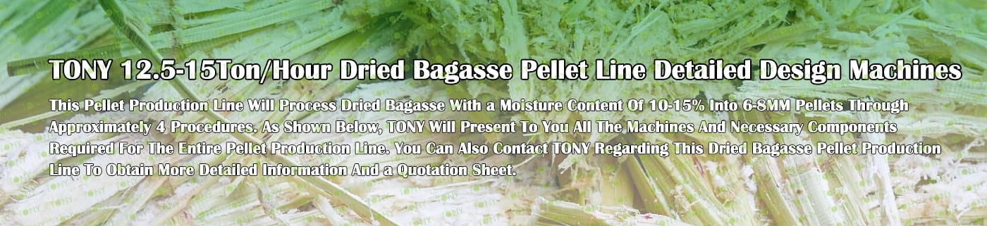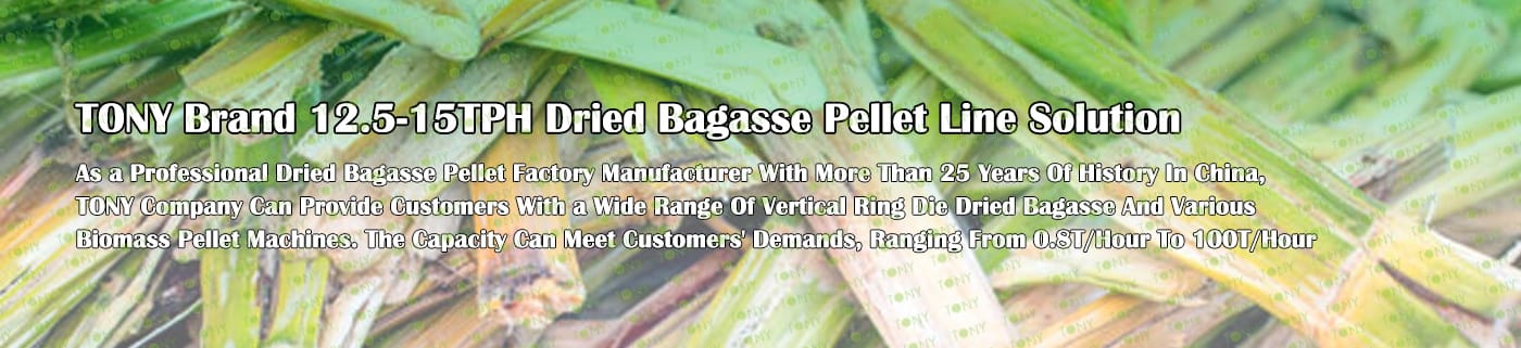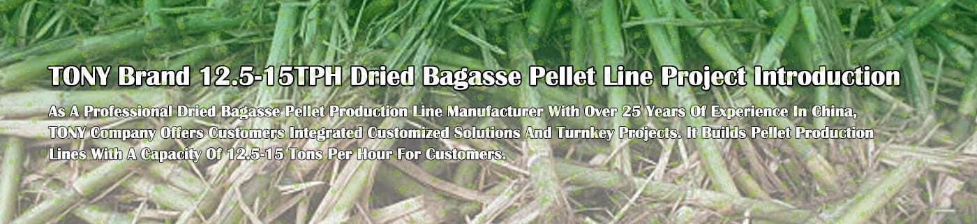 Заводът за производство на пелети от сушена багаса с марка TONY 12,5-15 тона/час може да използва сушена багаса като основна суровина. След предварителна обработка и обработка, той се втвърдява в пелетно гориво Bagasse с висока плътност. Това гориво е идеален заместител на въглищата и петрола и играе роля в енергоспестяването и намаляването на емисиите. Понастоящем той се използва широко в региони, богати на ресурси от багаса.