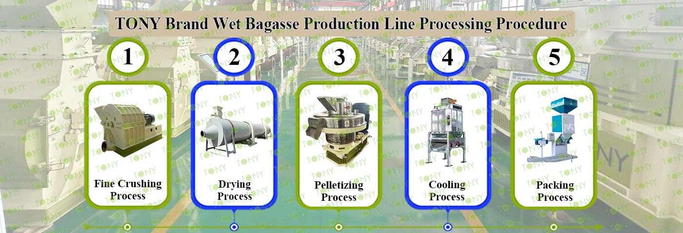 3.TONY Brand 1-1.5Ton /Hour Процес на проекта за линия за пелети за мокра багаса