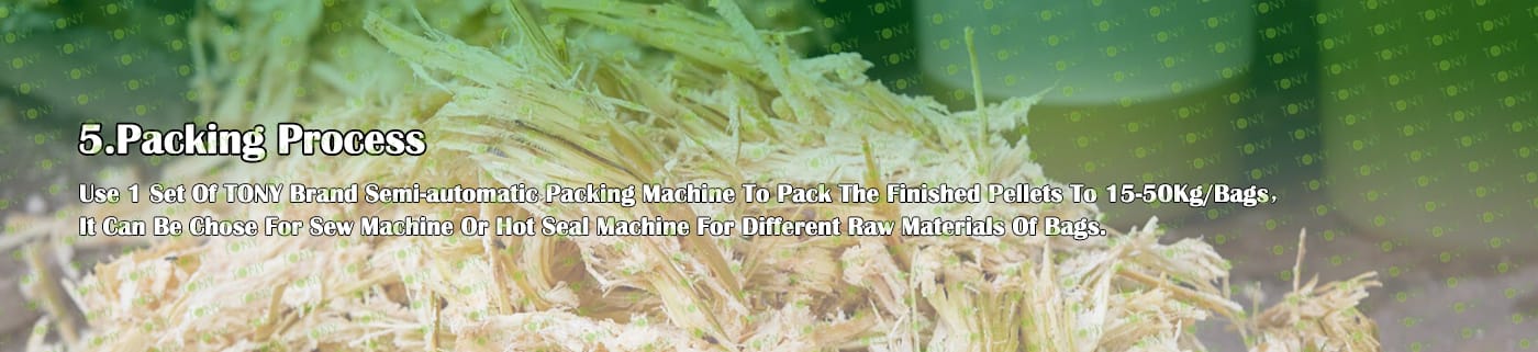 6. Основно оборудване: Ефективна чукова мелница-TFD65*55-45KW, въртяща се барабанна сушилня-1,6*12m, машина за пелети TONY- TYJ551-Ⅲ-110KW, охладител за поцинковани пелети, полуавтоматична опаковъчна машина и лентови транспортьори
