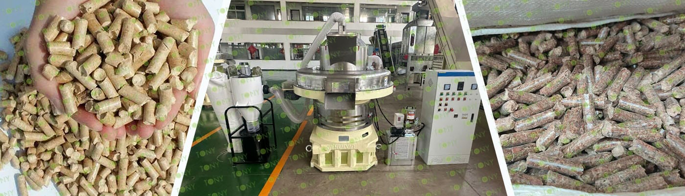 В етапа на предварителна обработка суровините се раздробяват до 4-14 mm с помощта на трошачка и след това се изсушават до съдържание на влага 10-15% с помощта на сушилня, като по този начин се подготвя материалът за пелетизиране. Пелетизирането е основният процес; пелетизаторът с вертикална пръстеновидна матрица използва високо налягане между ролките и пръстеновидната матрица, за да екструдира материала през отворите на матрицата. Естественият лигнин в материала действа като свързващо вещество и екструдираните пелети след това се нарязват на 2-5 см дължини от нож. В етапа на охлаждане, противотокова охладителна машина охлажда горещите пелети (70-90°C) до стайна температура, като едновременно с това намалява съдържанието на влага до под 10%, за да предотврати образуването на бучки и растежа на мухъл. Накрая автоматична машина за претегляне и пакетиране пакетира готовите пелети, завършвайки обработката.
