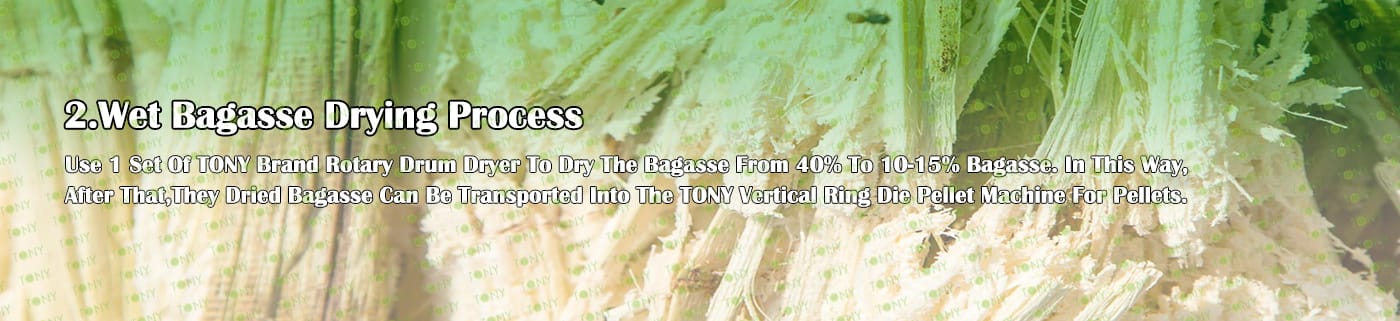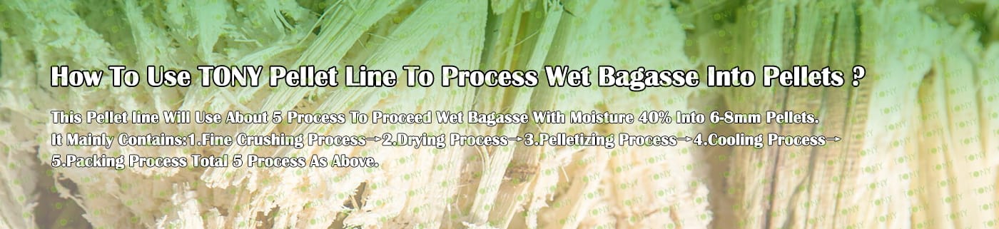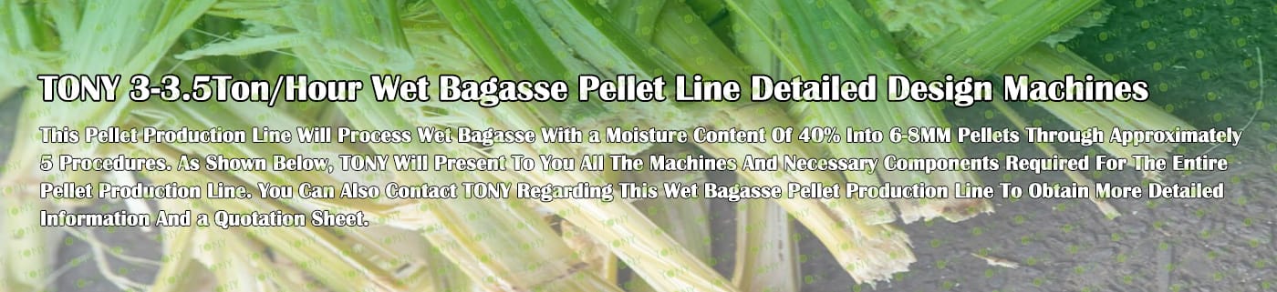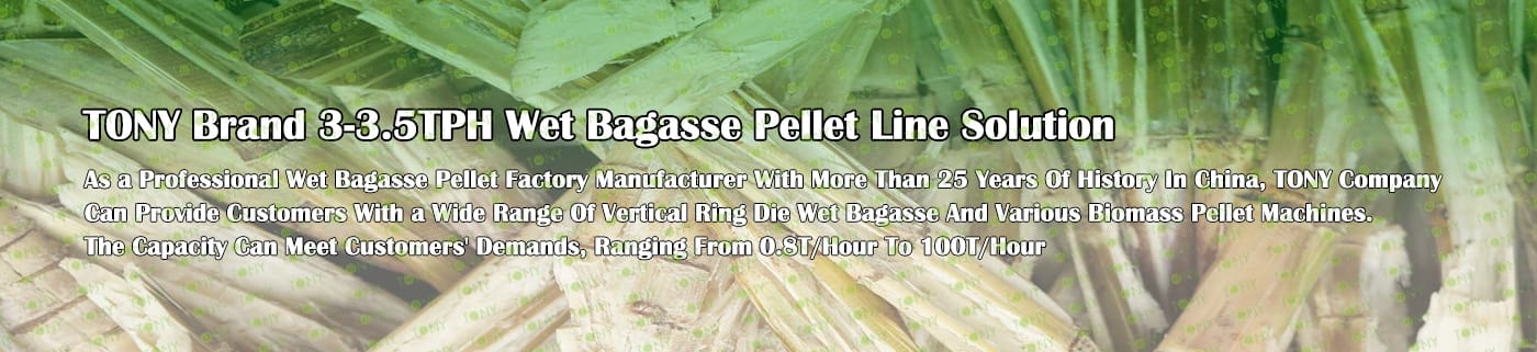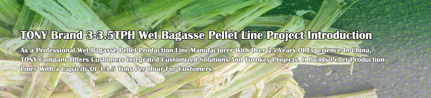 Заводът за производство на пелети за мокра багаса с марка TONY 3-3,5 тона/час може да използва мокра багаса като основна суровина. След предварителна обработка и обработка, той се втвърдява в пелетно гориво Bagasse с висока плътност. Това гориво е идеален заместител на въглищата и петрола и играе роля в енергоспестяването и намаляването на емисиите. Понастоящем той се използва широко в региони, богати на ресурси от багаса.