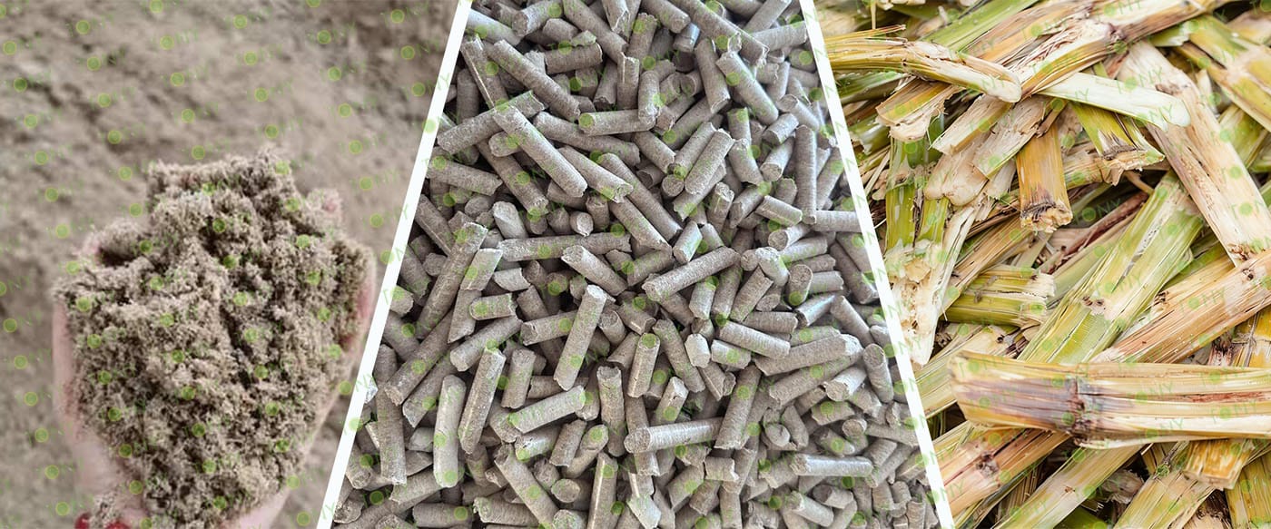 По-конкретно, лигнинът в багасата се топи при температури между 120°C и 160°C и омеква и се пластифицира при 180°C. В рамките на този температурен диапазон, при определено налягане, лигнинът се свързва плътно с целулозата в торбата. Този процес обикновено се извършва в пелетизатор за биомаса, където механичната сила изстисква и компресира насипната торба в малки пелети от биомаса с форма на пръчка.