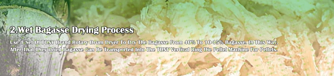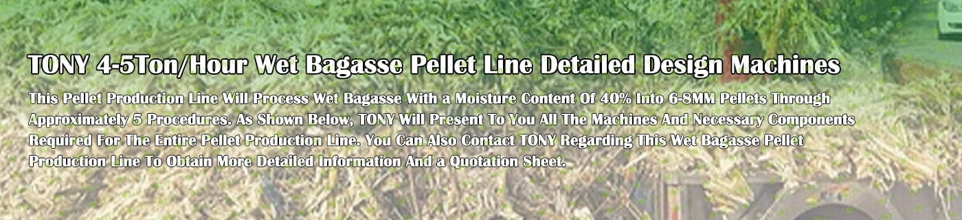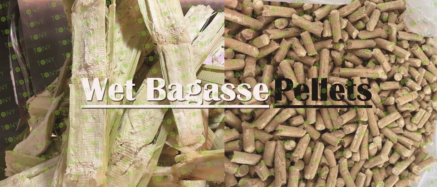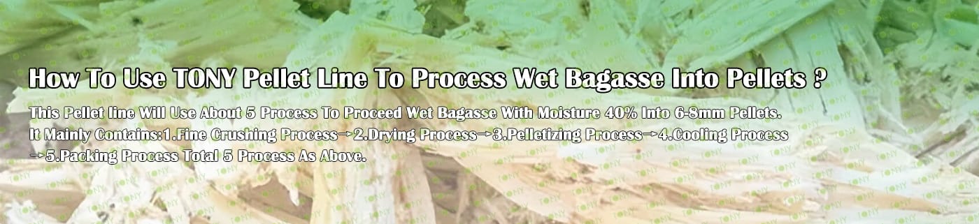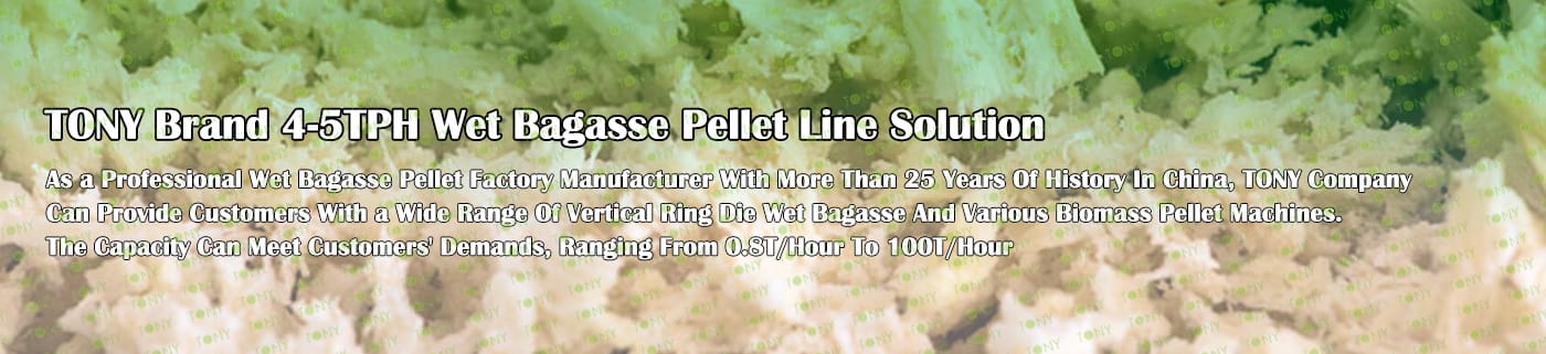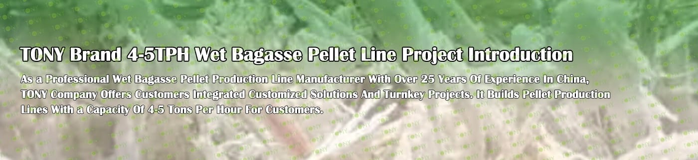 Заводът за производство на пелети за мокра багаса с марка TONY 4-5 тона/час може да използва мокра багаса като основна суровина. След предварителна обработка и обработка, той се втвърдява в пелетно гориво Bagasse с висока плътност. Това гориво е идеален заместител на въглищата и петрола и играе роля в енергоспестяването и намаляването на емисиите. Понастоящем той се използва широко в региони, богати на ресурси от багаса.