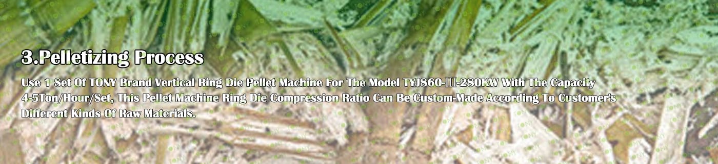 6. Основно оборудване: Ефективна чукова мелница-TFD75*132-132KW, въртяща се барабанна сушилня-1,8*20m, машина за пелети TONY- TYJ860-Ⅲ-280KW, охладител за поцинковани пелети, полуавтоматична машина за опаковане и лентови транспортьори