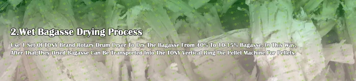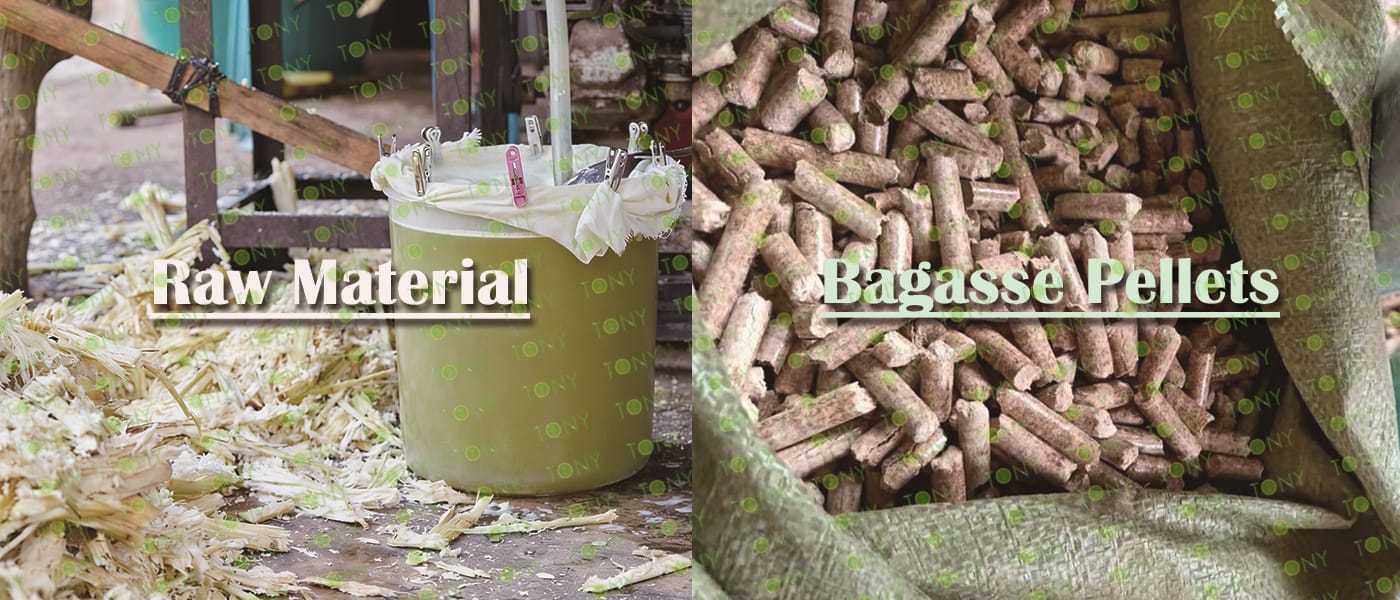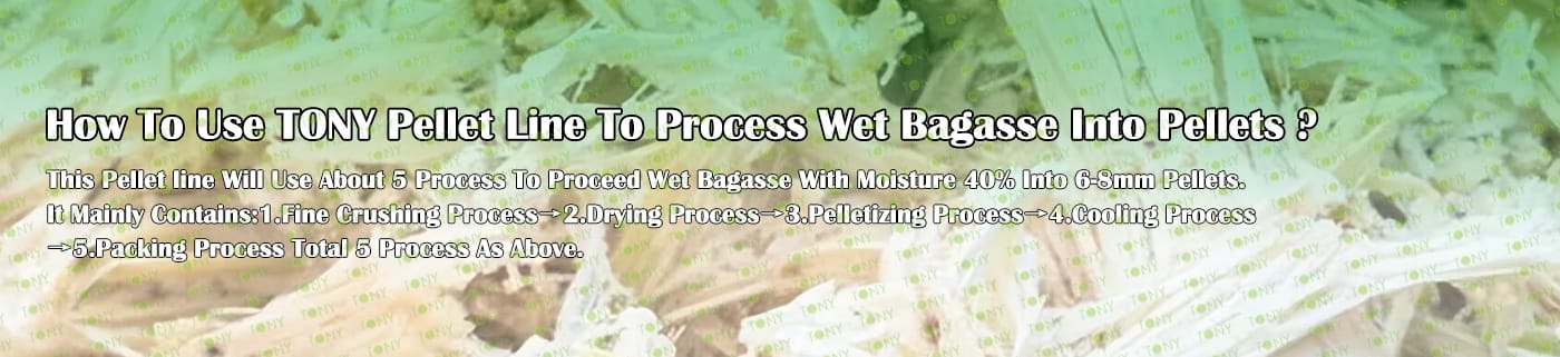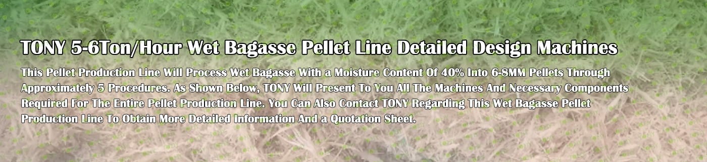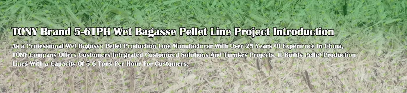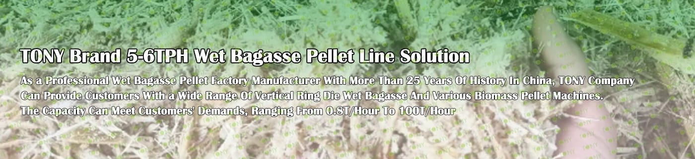 Заводът за производство на пелети за мокра багаса с марка TONY 5-6 тона/час може да използва мокра багаса като основна суровина. След предварителна обработка и обработка, той се втвърдява в пелетно гориво Bagasse с висока плътност. Това гориво е идеален заместител на въглищата и петрола и играе роля в енергоспестяването и намаляването на емисиите. Понастоящем той се използва широко в региони, богати на ресурси от багаса.