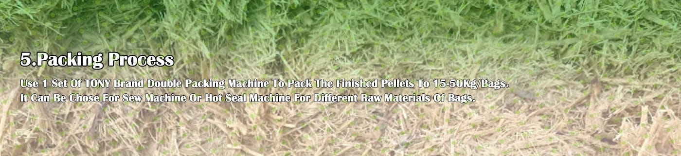 6. Основно оборудване: Ефективна чукова мелница-TFD75*160-160KW, въртяща се барабанна сушилня-1,8*24m, машина за пелети TONY-TYJ760-Ⅲ-160KW, охладител за поцинковани пелети, машина за двойно опаковане и лентови транспортьори