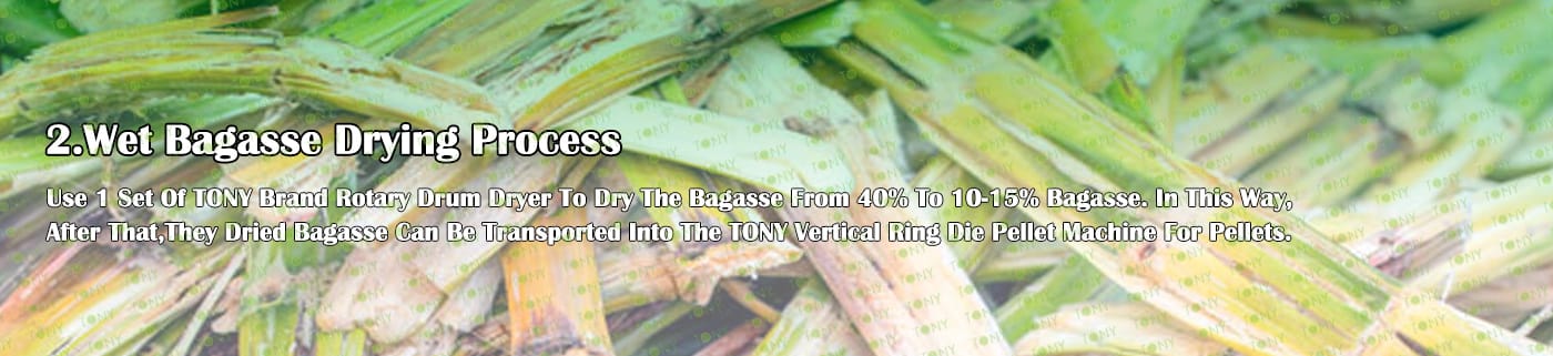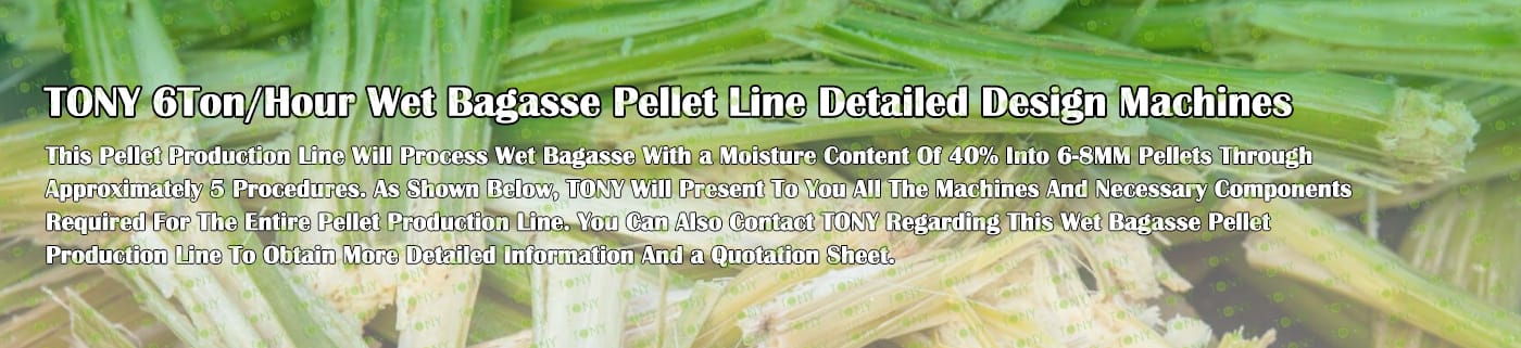 Заводът за производство на пелети за мокра багаса с марка TONY 6 тона/час може да използва мокра багаса като основна суровина. След предварителна обработка и обработка, той се втвърдява в пелетно гориво Bagasse с висока плътност. Това гориво е идеален заместител на въглищата и петрола и играе роля в енергоспестяването и намаляването на емисиите. Понастоящем той се използва широко в региони, богати на ресурси от багаса.
