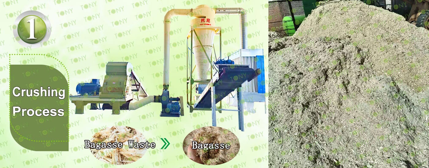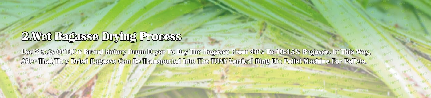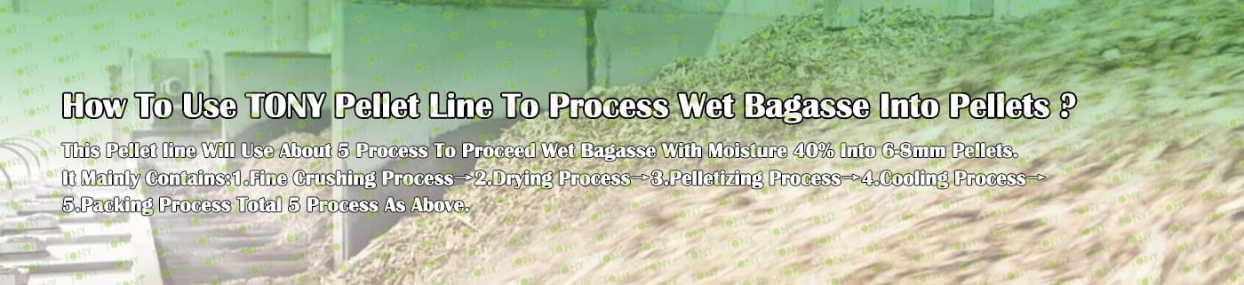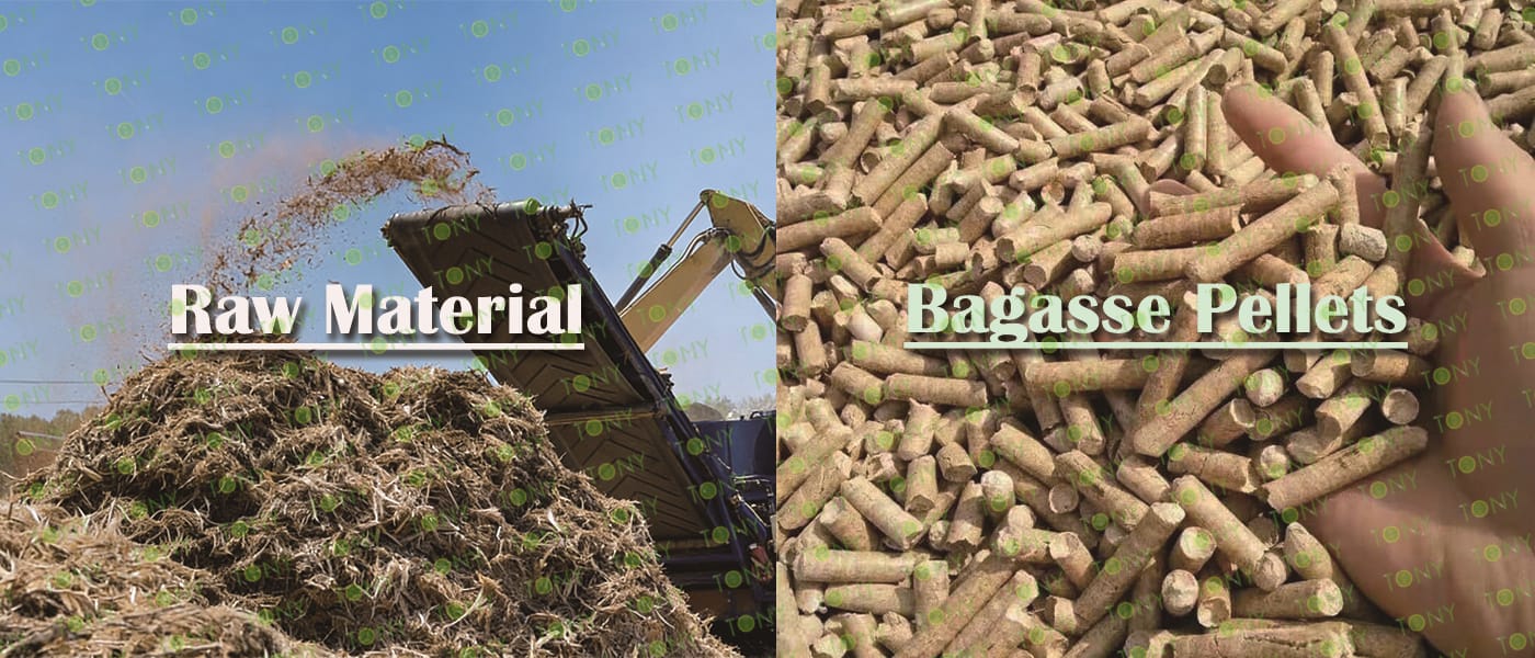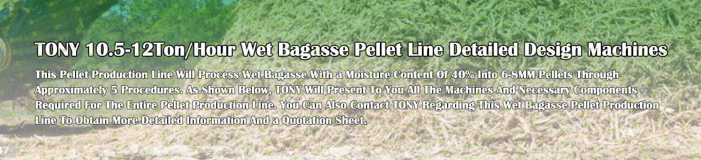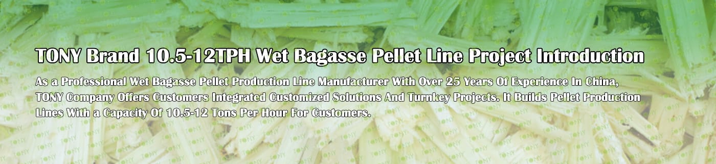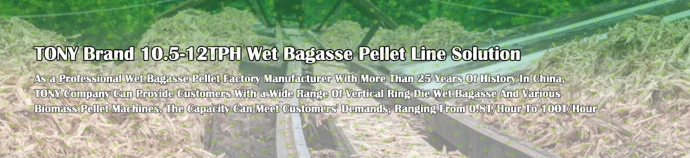 Заводът за производство на пелети за мокра багаса с марка TONY 10,5-12 тона/час може да използва мокра багаса като основна суровина. След предварителна обработка и обработка, той се втвърдява в пелетно гориво Bagasse с висока плътност. Това гориво е идеален заместител на въглищата и петрола и играе роля в енергоспестяването и намаляването на емисиите. Понастоящем той се използва широко в региони, богати на ресурси от багаса.