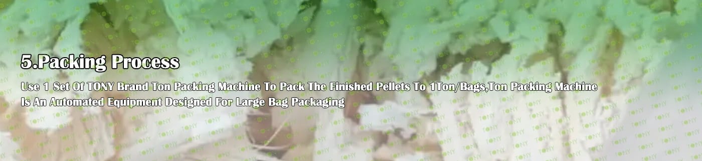 4. Основна машина: чукова мелница, сушилня с ротационен барабан, машина за пелети TONY TYJ760-Ⅲ-160KW, охладител за пелети, опаковъчна машина и лентови транспортьори