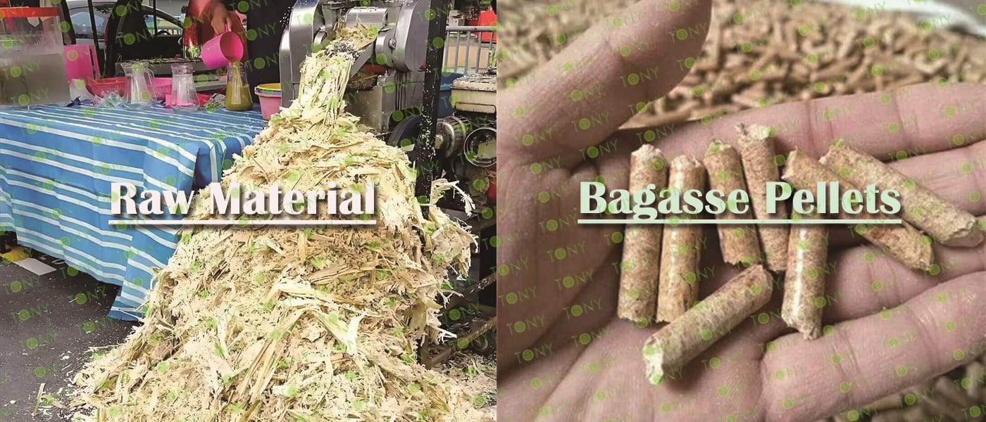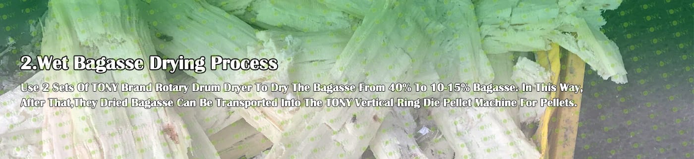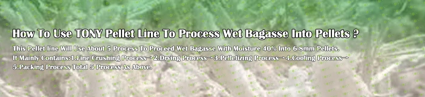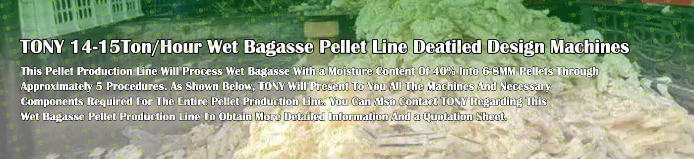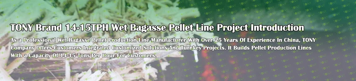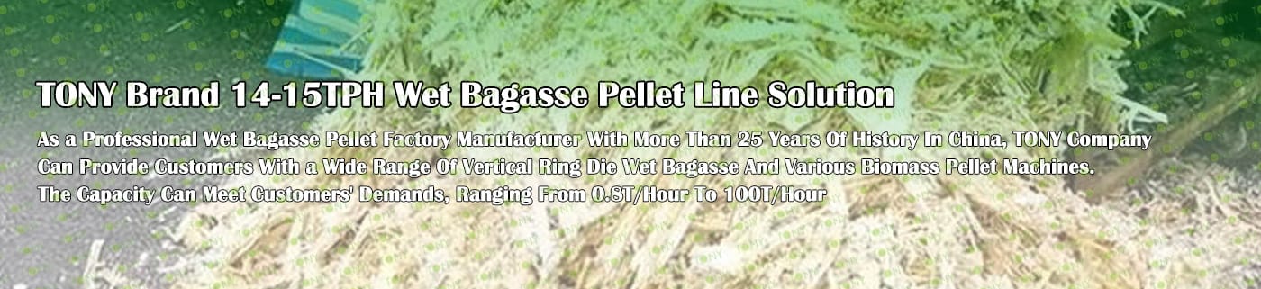 Заводът за производство на пелети за мокра багаса с марка TONY 14-15 тона/час може да използва мокра багаса като основна суровина. След предварителна обработка и обработка, той се втвърдява в пелетно гориво Bagasse с висока плътност. Това гориво е идеален заместител на въглищата и петрола и играе роля в енергоспестяването и намаляването на емисиите. Понастоящем той се използва широко в региони, богати на ресурси от багаса.